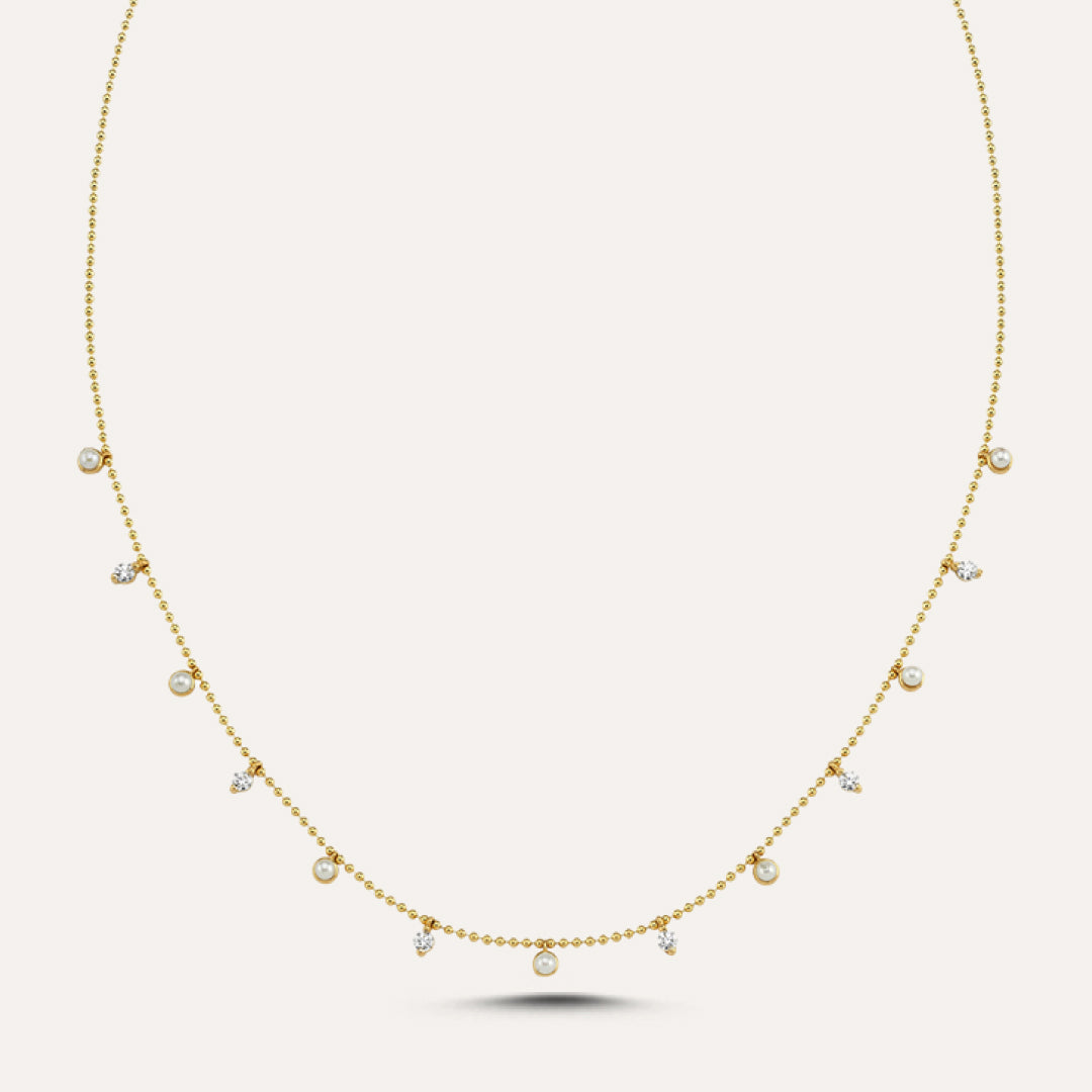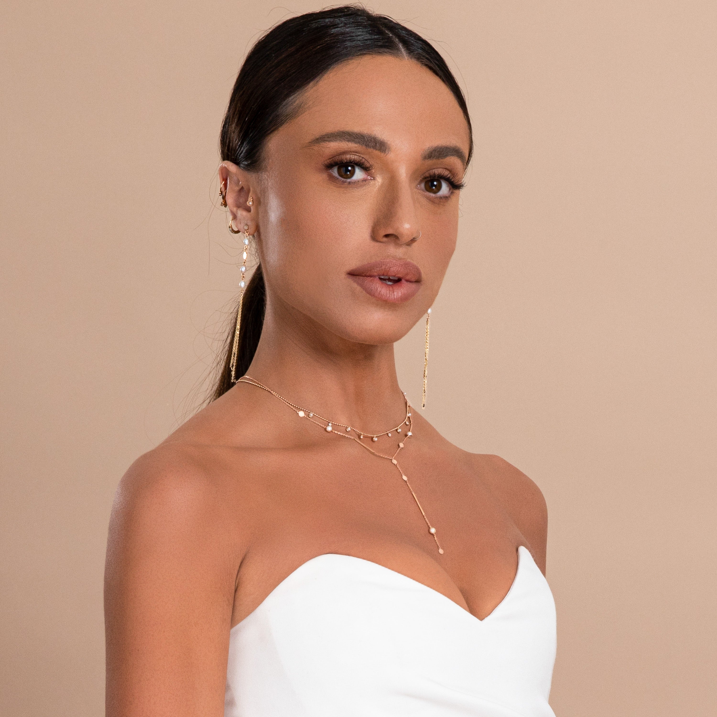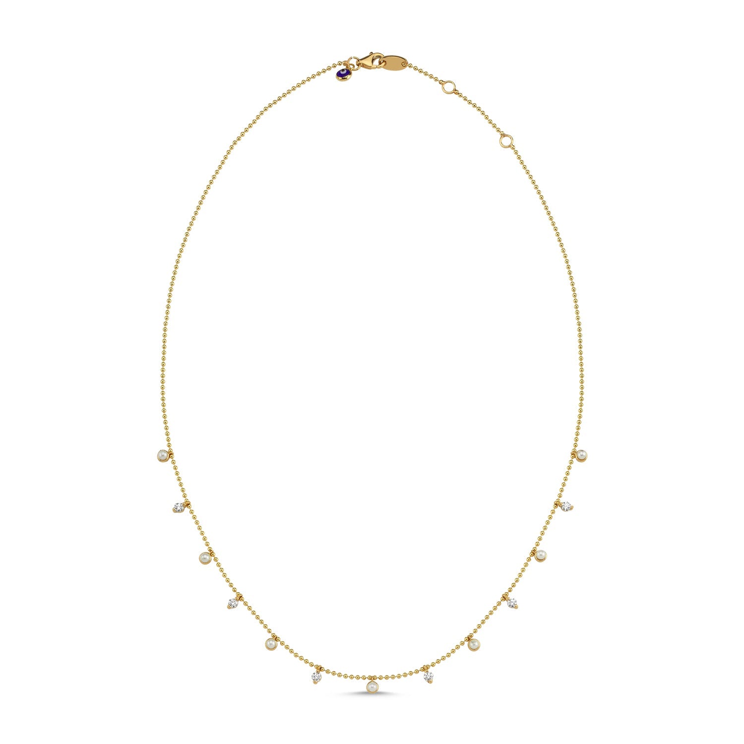 This classic design combines the feminine and iconic pearl embellishment with our signature ball chain to create a modern and versatile piece to layer with any look.
