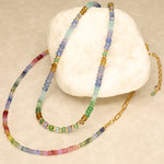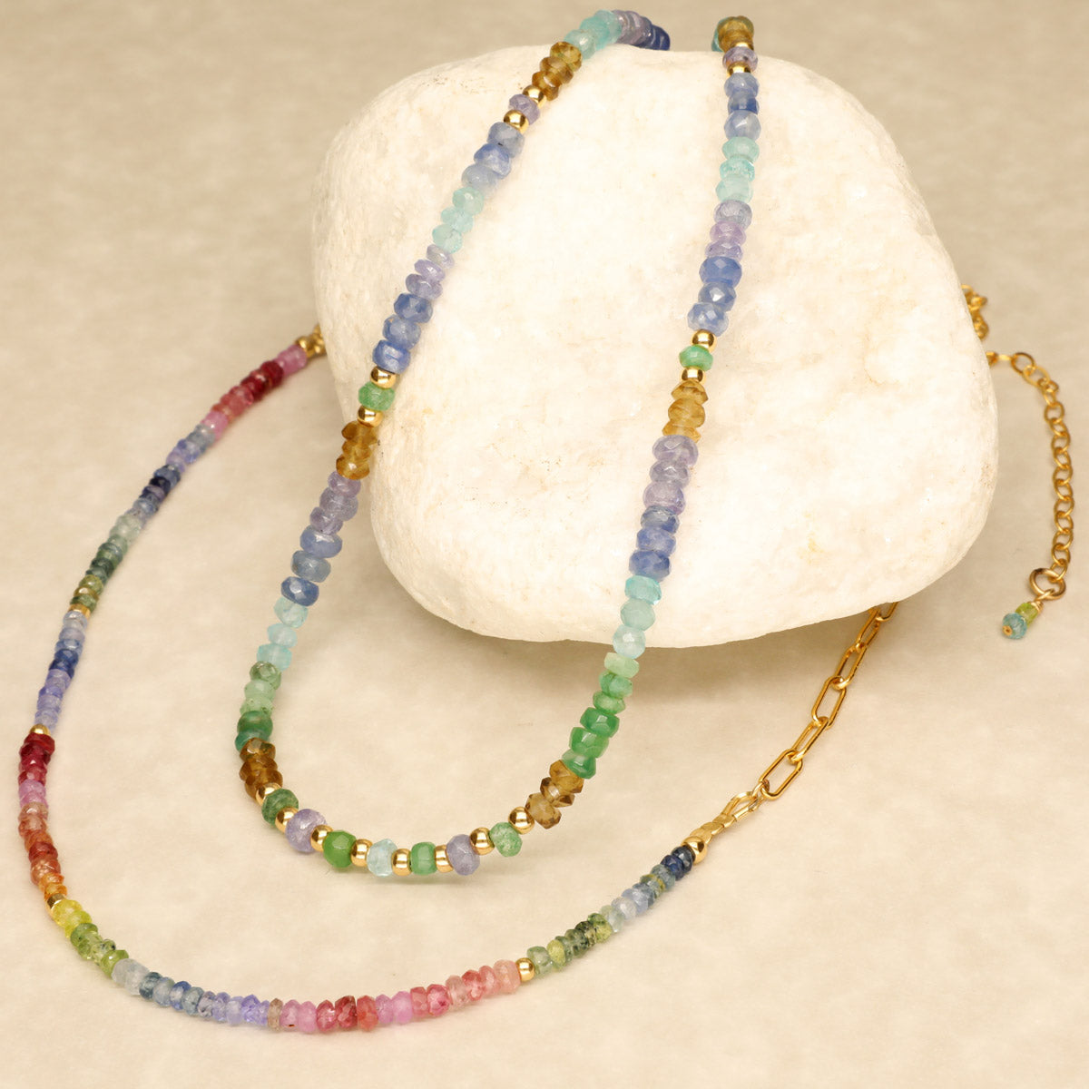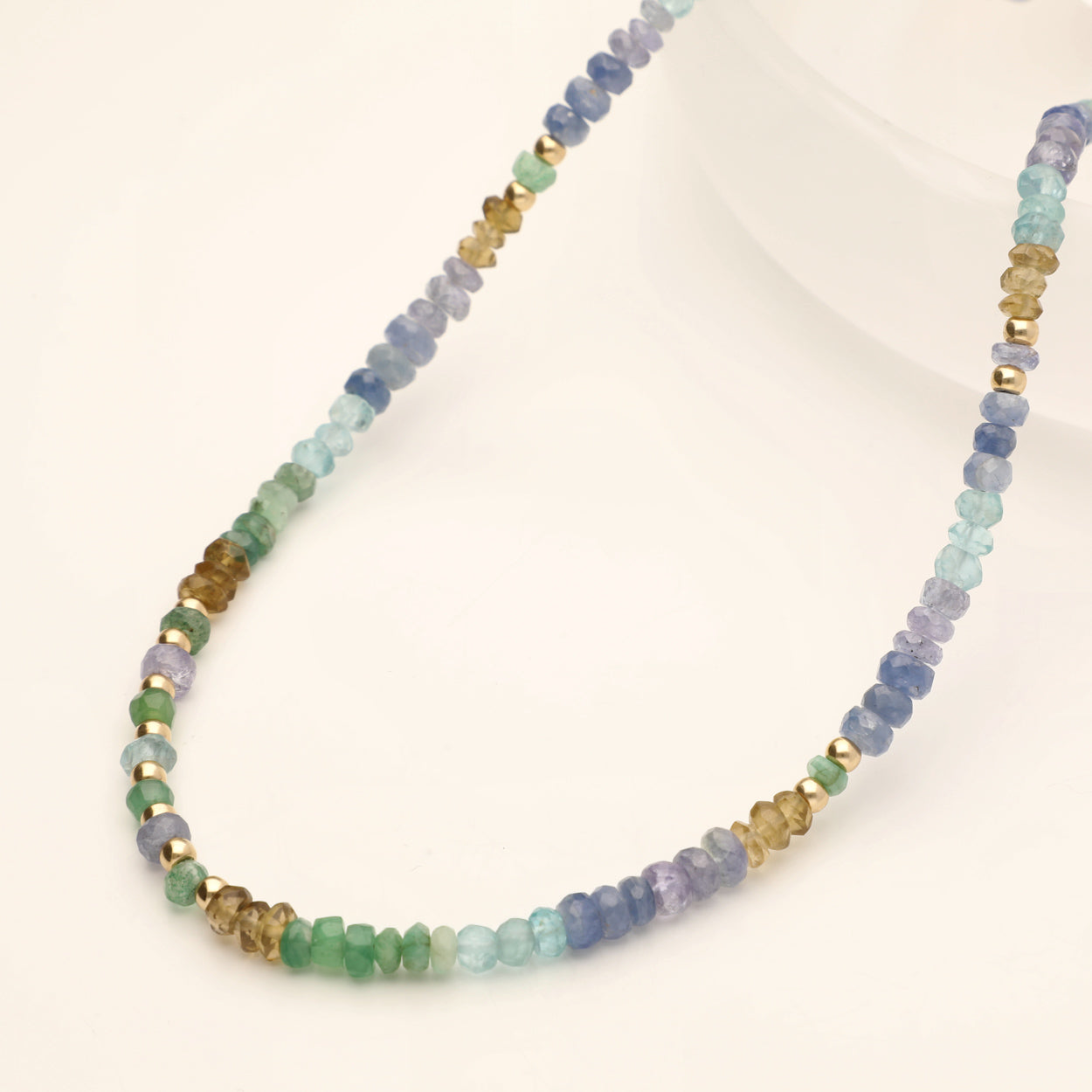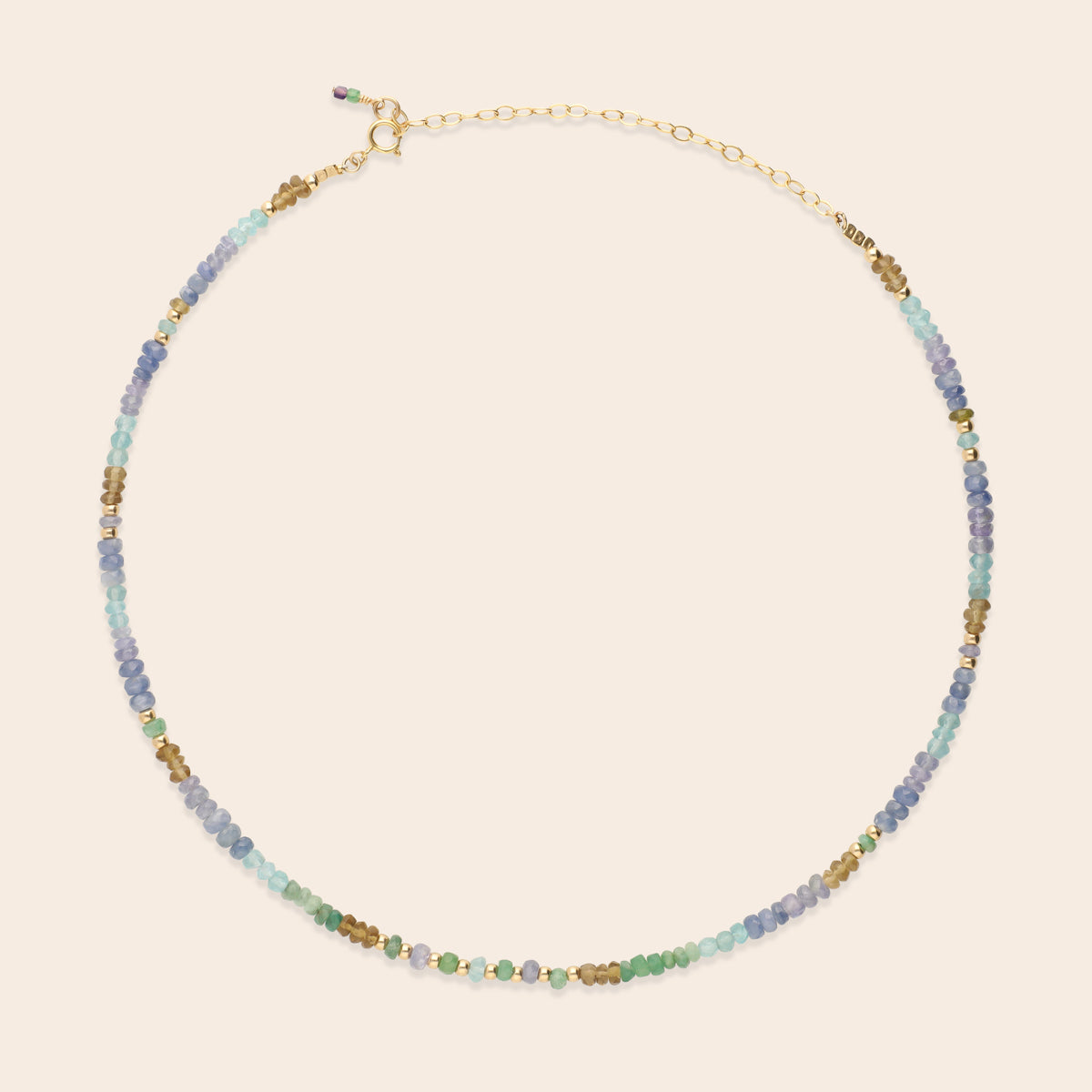 Delicate blends of purple, brown and green combine to create an unexpected yet harmonious palette which come together in a magical mix that will suit any skin tone.. Wear with your little black dress, or more casually with a crisp white or sporty denim shirt to make this mix pop. Perfect to wear alone or layer up with your favourite gold or silver necklace stack. Hand selected semi precious stones highlight the intrinsic beauty of nature to create a stunning piece you will fall in love with. As modern as it is sophisticated.