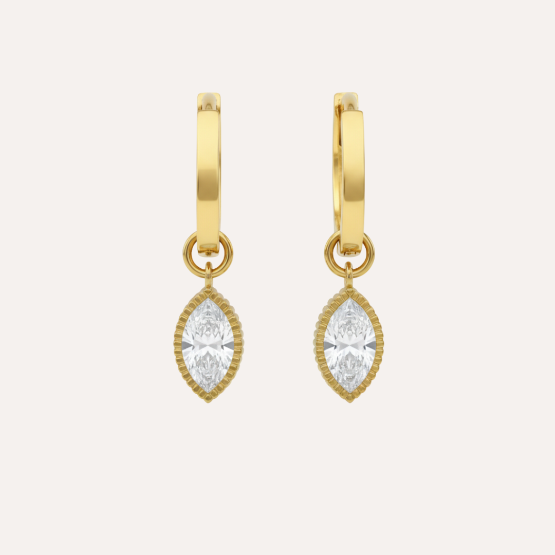 Gold vermeil hanging marquis charm easily thread onto a stud or basic ear hoop to create a stylish new design