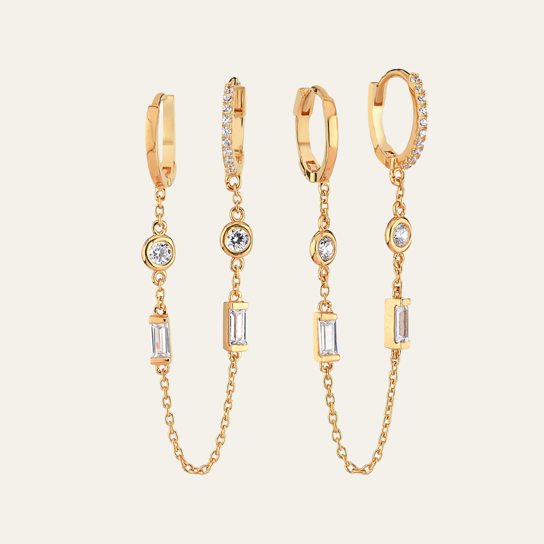 Double Drop Chain Hoop Earring