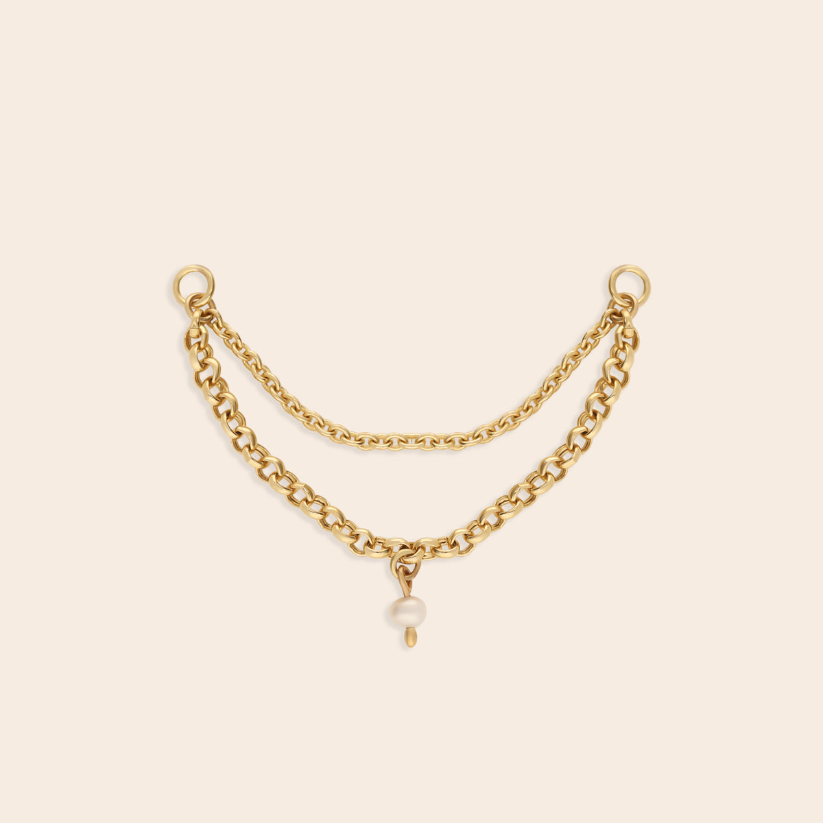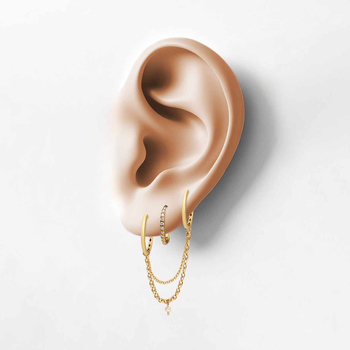 This little baby will turn and basic ear hoop or stud combination into a striking drop earring. Just thread the loops onto two side by side lobe earrings or onto the front and back of an cartilage stud and watch the magic happen