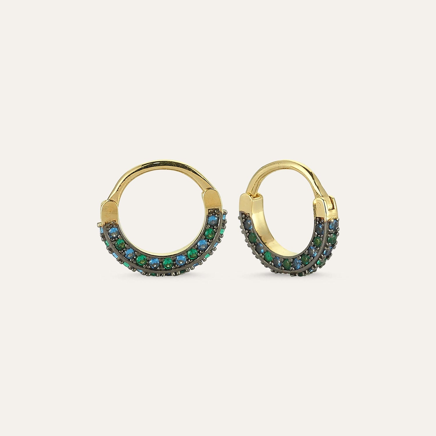 This unique more "chunky" style is perfect for lobe helix or daith piercing. With and extra long post and stone embellishment on the front and side of the earring, it is perfect for new or existing helix piercings.