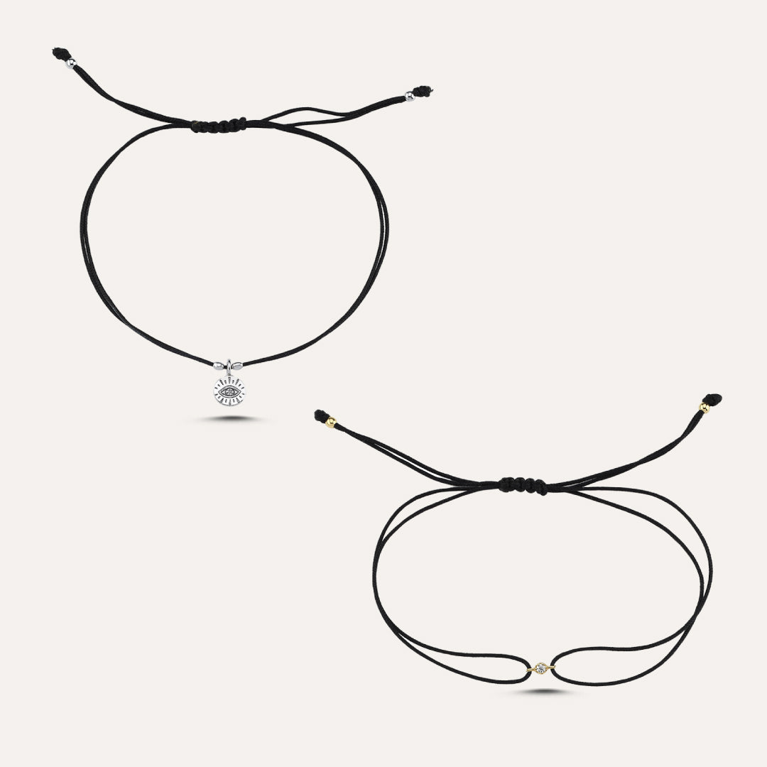 Evil Eye Cord Bracelet and Diamond Cord Bracelet Set