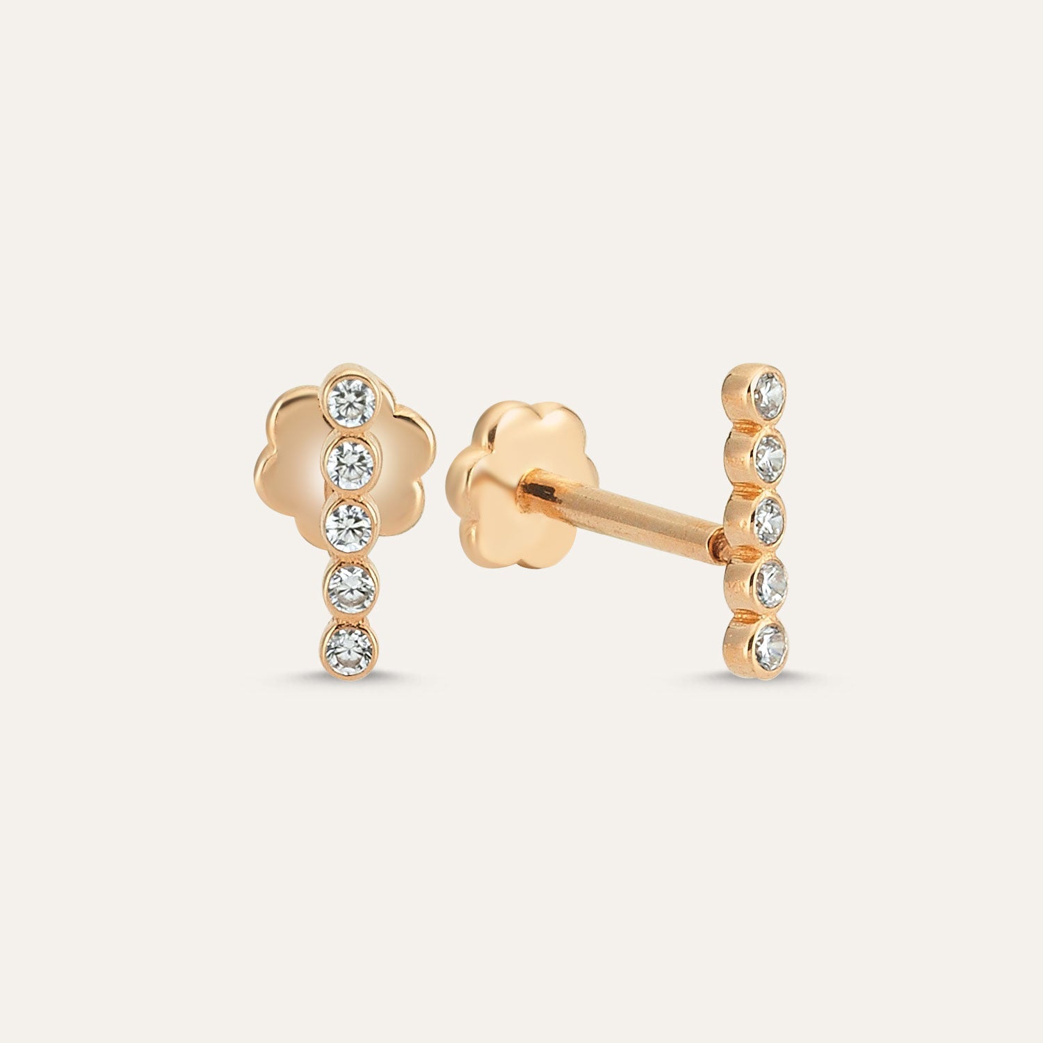 This delicately designed stud is perfect for lobe helix conch or flat helix piercings. Its simple yet classic designed pairs well with any other style in the collection. Adding just the right amount of sparkle this stud has a flat screw back post to sit comfortably anywhere on the ear.