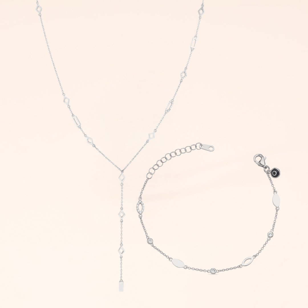 Featuring a blend of flawlessly polished smooth and pave stone embellished geometric shapes, this set is one of the cornerstone pieces of the collection. Sleek, clean lines and finely crafted details come together to create a look that is truly captivating.