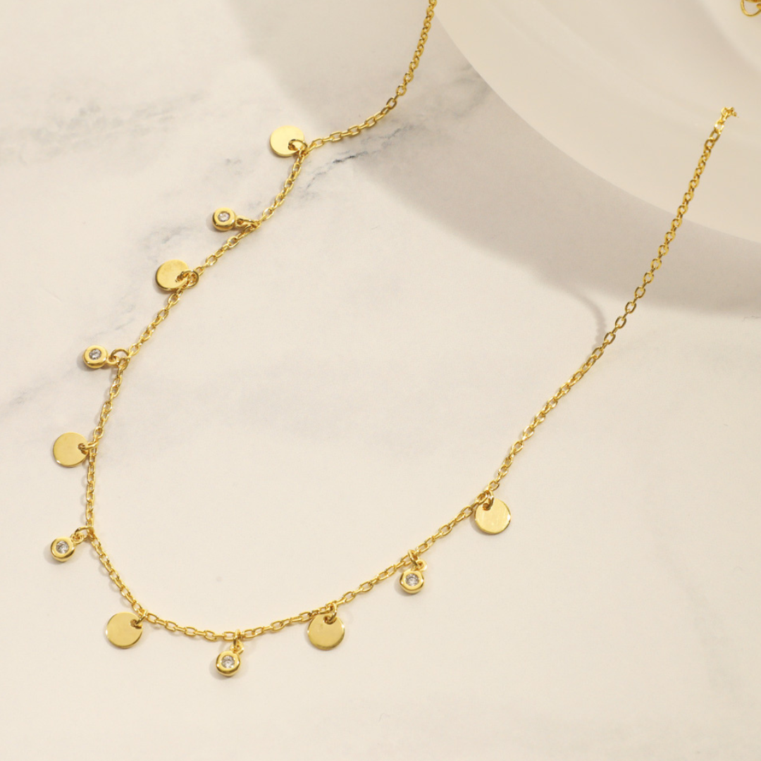 Mini Shakira Necklace : Gold filled details with Zirconia 36cm +6cm extension 4mm plates 1.5mm zirconia