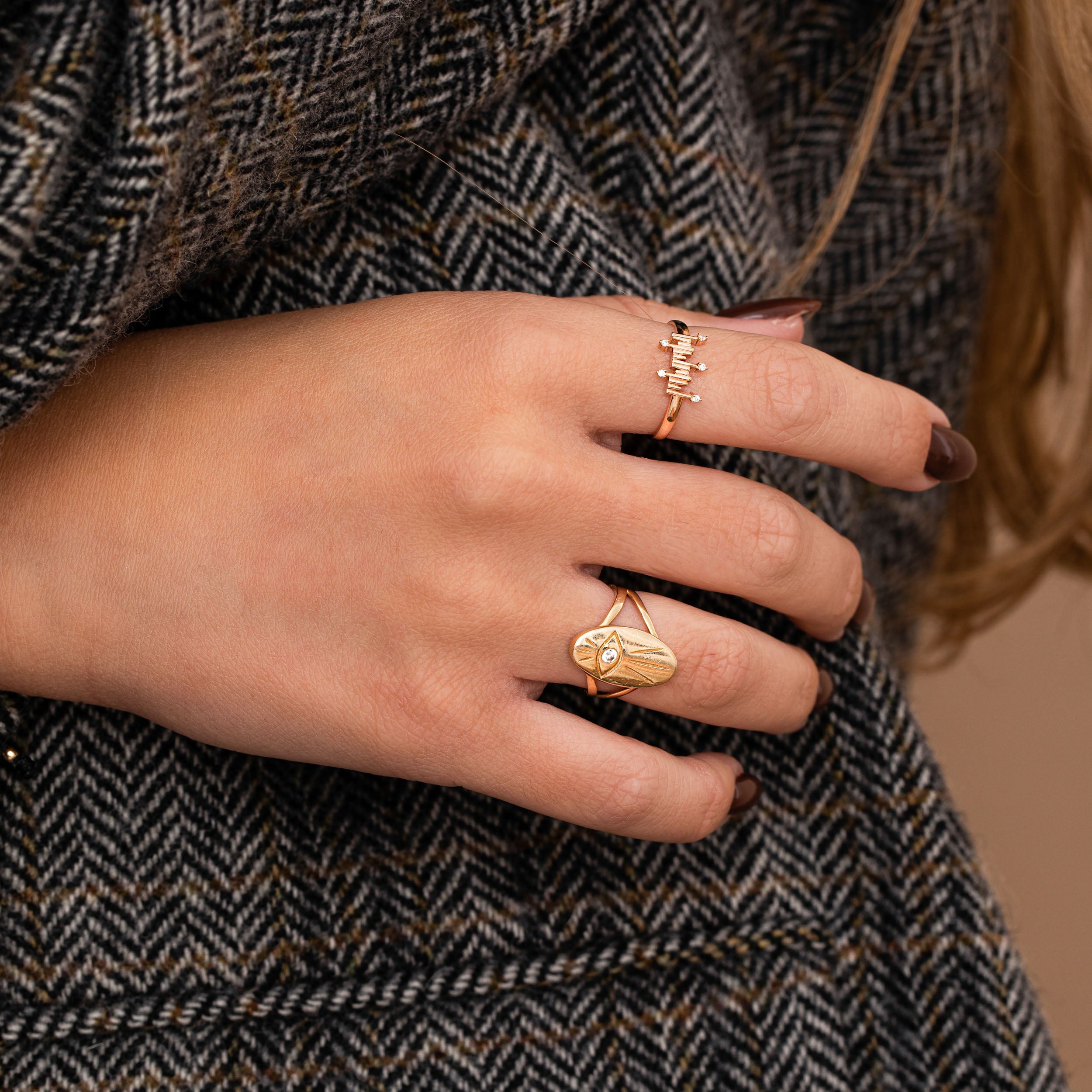 Delicate yet modern this intricately designed ring is part of our latest Meteor collection. A design classic which works well as a pinky ring or elsewhere on the hand to add just a touch of sparkle