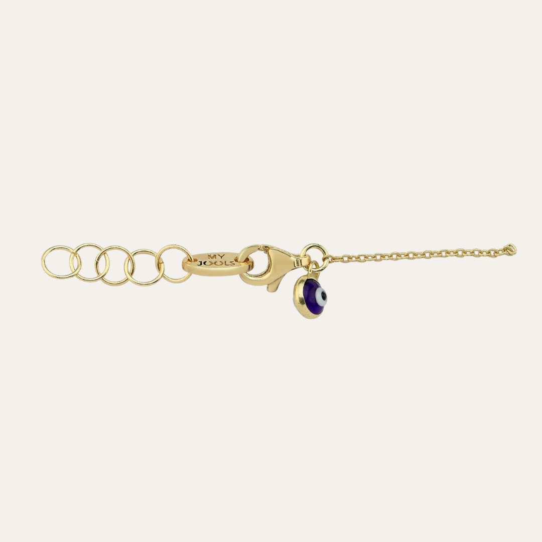 42cm (40cm + 2cm extension) with our gold enamel evil eye charm/ lobster clasp