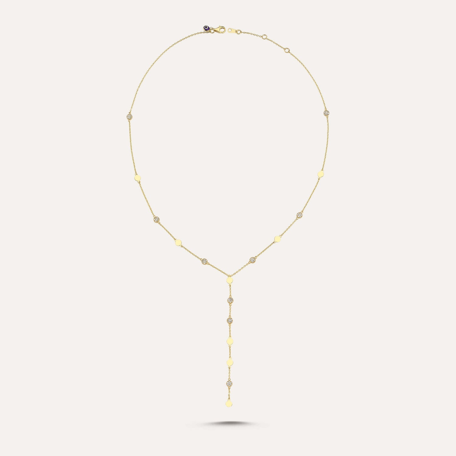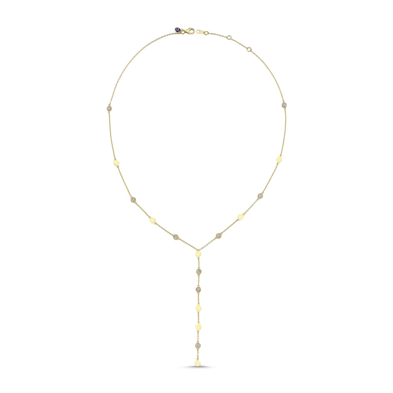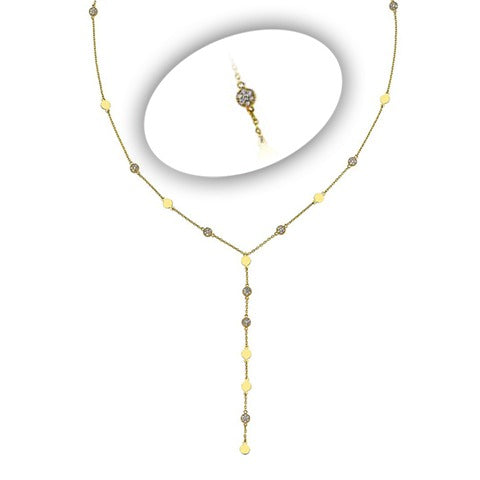 This is definitely one of my favorite necklaces either worn alone or layered up with some of the shorter ones in the collection. This lariette can be worn shorter close to the neck, or lower as part of a stack depending on your outfit. A perfect combination with our small shakira stone choker, this feminine and easy to wear lariette is a delicate combination of high shine polished  and pave elements. A real must have!
