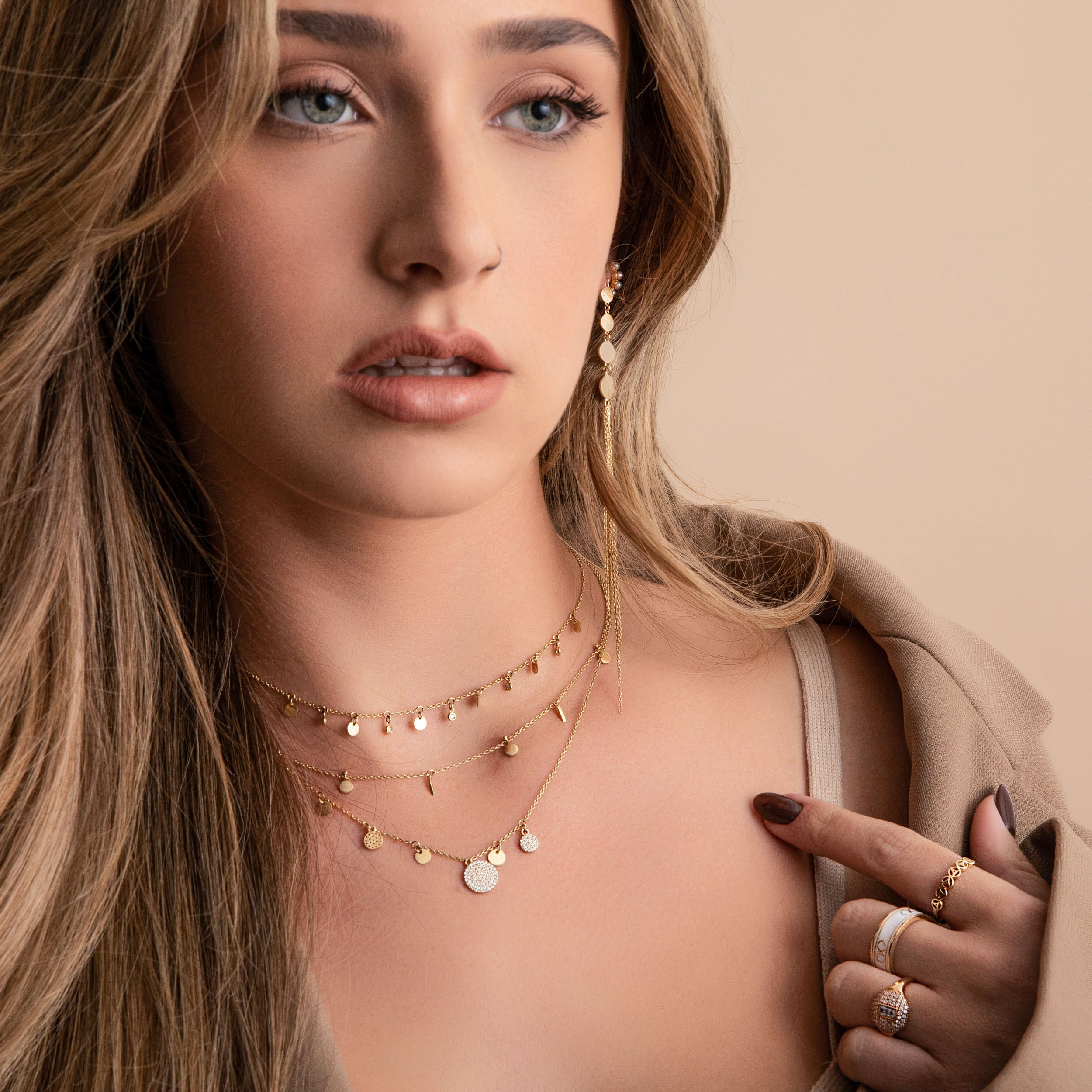 This is one of those pieces you wear and wear! Worn alone or layered up with others in the collection, the high shine plane and pave plates catch the light as you move and add a real element of glamour and boho style to any outfit. A new addition to our shakira range, it's fast becoming one of our best sellers.