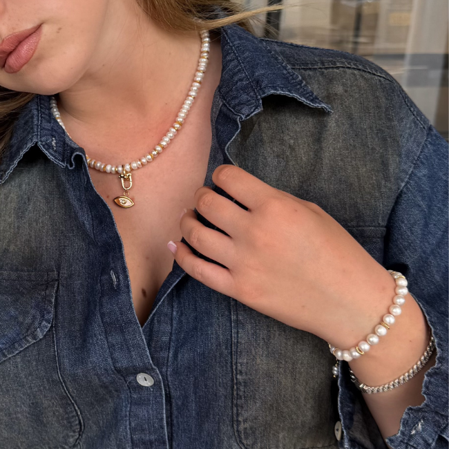 This season its all about pearls combined with modern and colourful pendants. The perfect statement piece to layer up in your stack. Wear with a crisp white shirt or a black structured blazer for this seasons ultimate look
