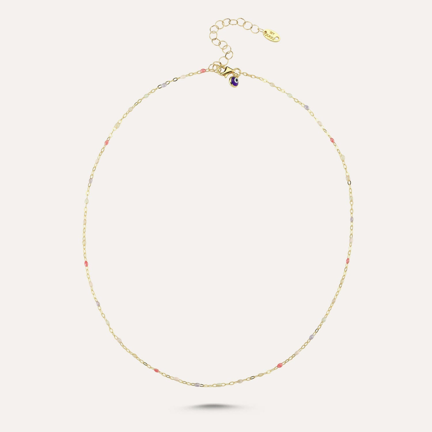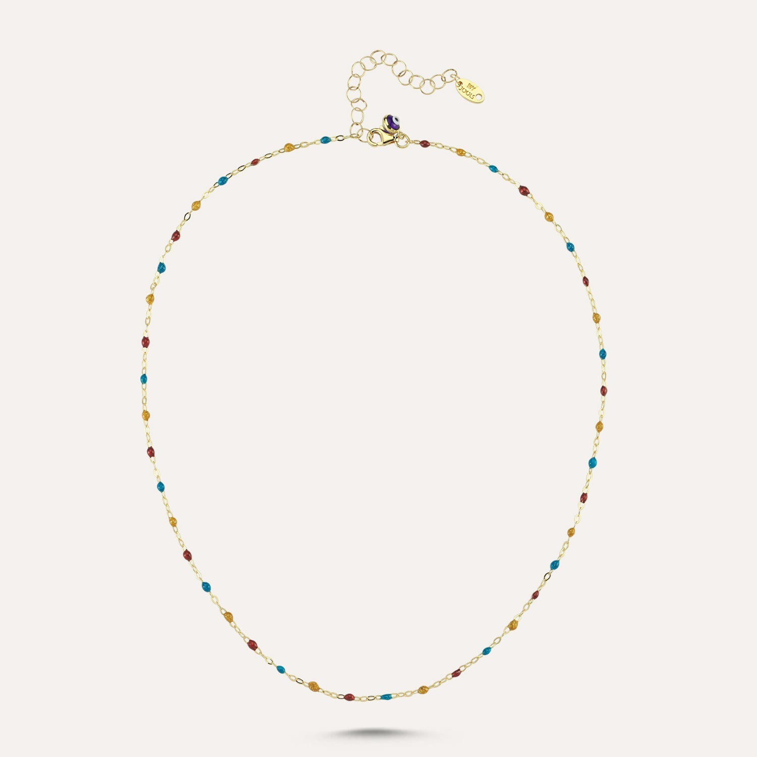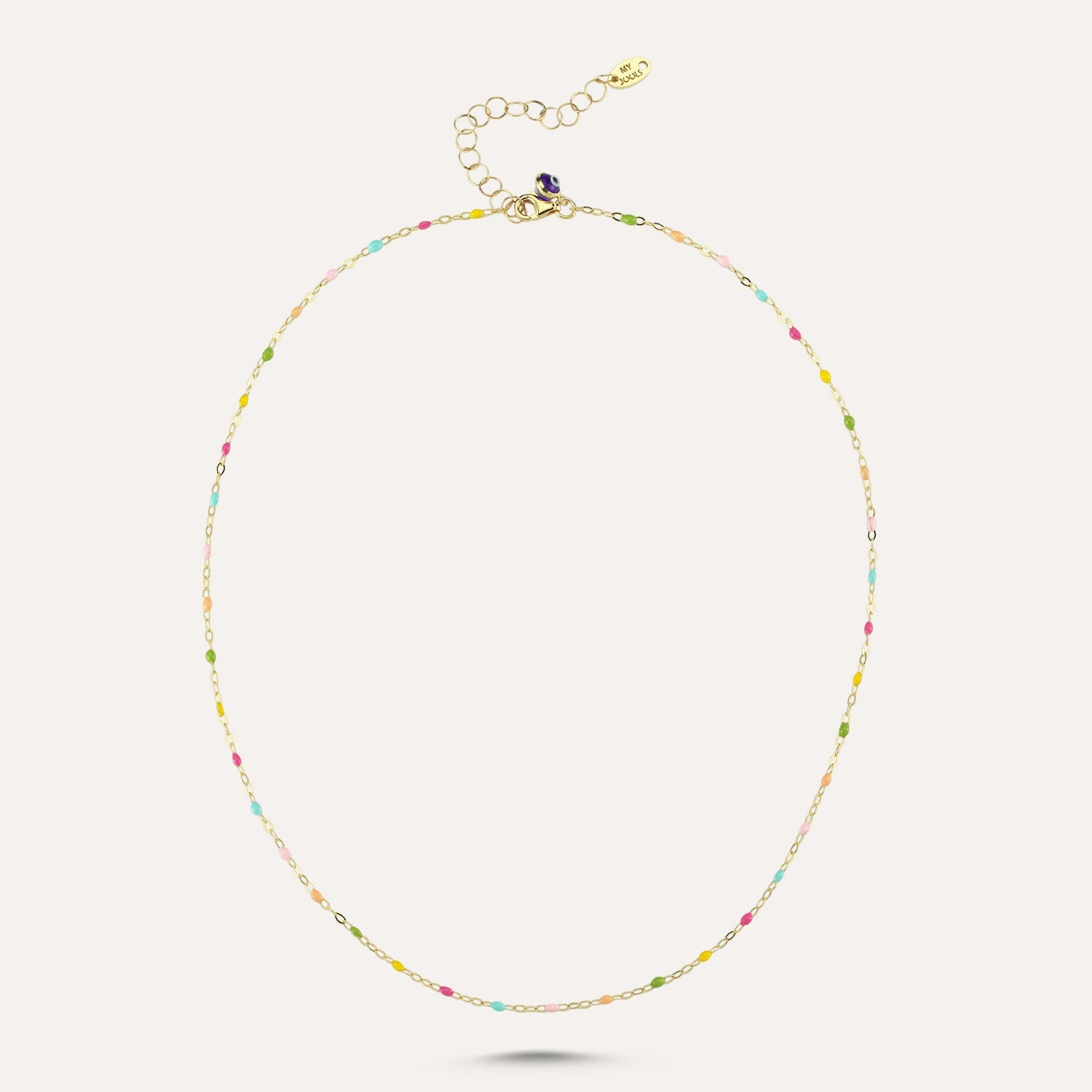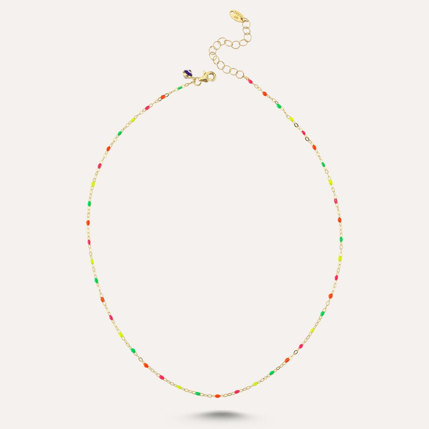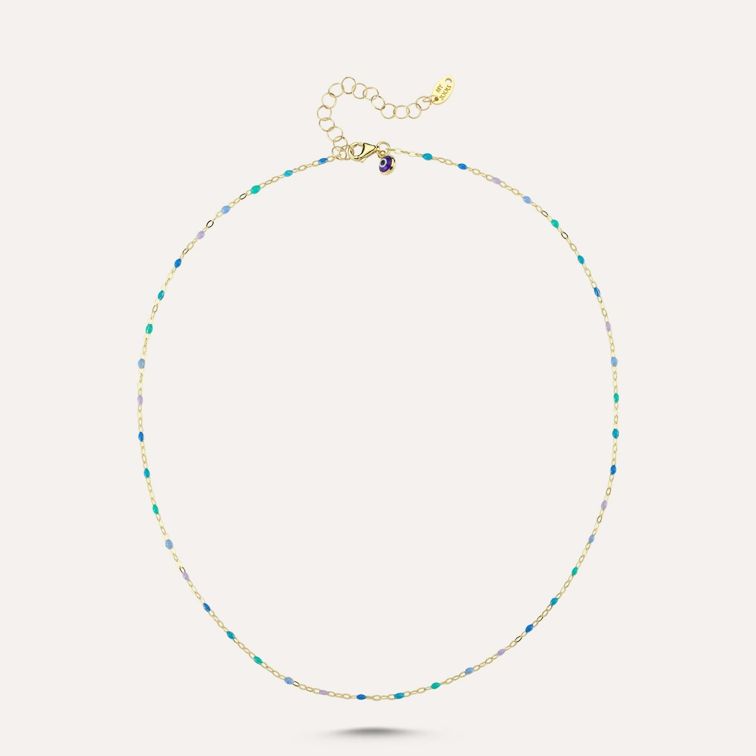 This stylish and distinctive style is the perfect way to add colour and chic to your mix. Choose a single colour or one of our mixes. We have created this design in 14ct gold using liquid resin that will stand the test of time in any conditions and will become a must have in nay necklace stack