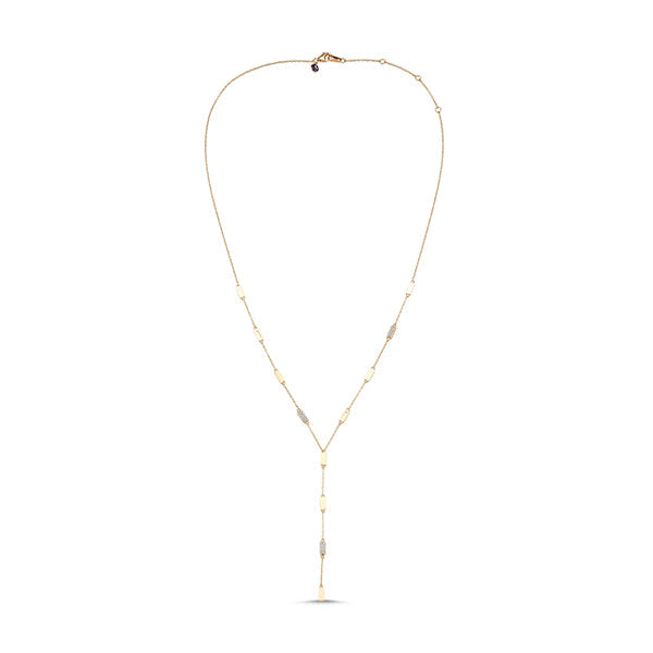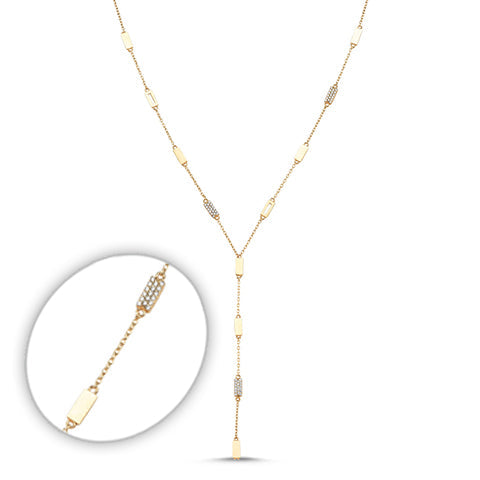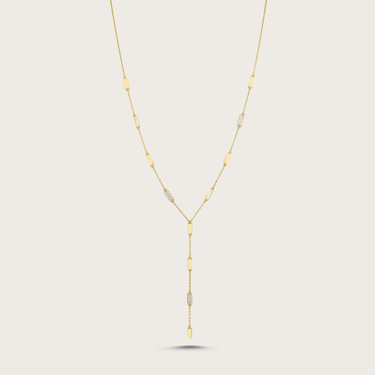 This classic yet contemporary design is as versatile as it is beautiful. Worn alone or as part of a necklace stack, our rectangular geometric lariette is handcrafted combining highly polished and pave stone embellished elements to create an effect that is eye catching and feminine. This piece is a great addition to any collection. With three length adjustments you can personalize your look to suit your mood. The options are endless