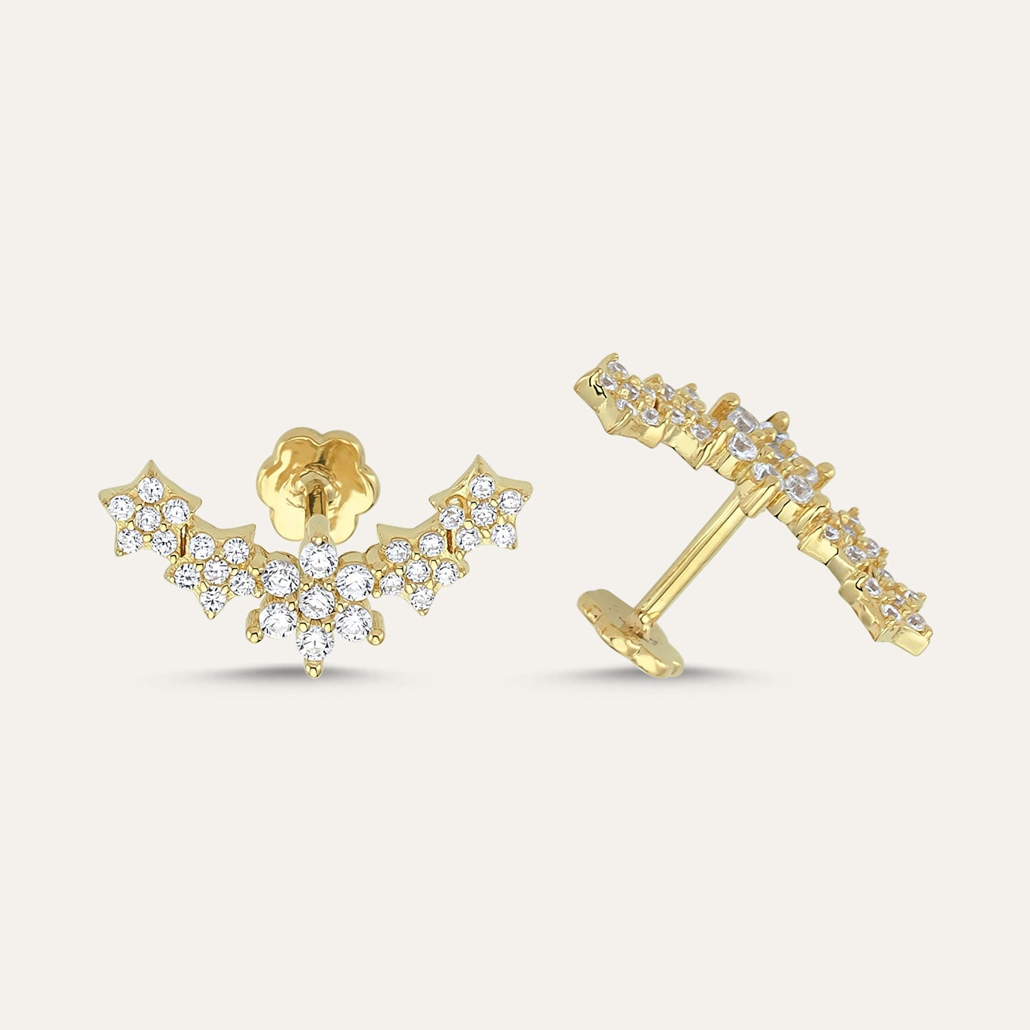 This long awaited contemporary piece is both beautiful and eye catching. Perfectly proportioned it is easy to wear and adds just the right amount of sparkle to any ear. Suitable for helix, flat helix or conch piercing, it comes with a flat screw back post to ensure maximum comfort.