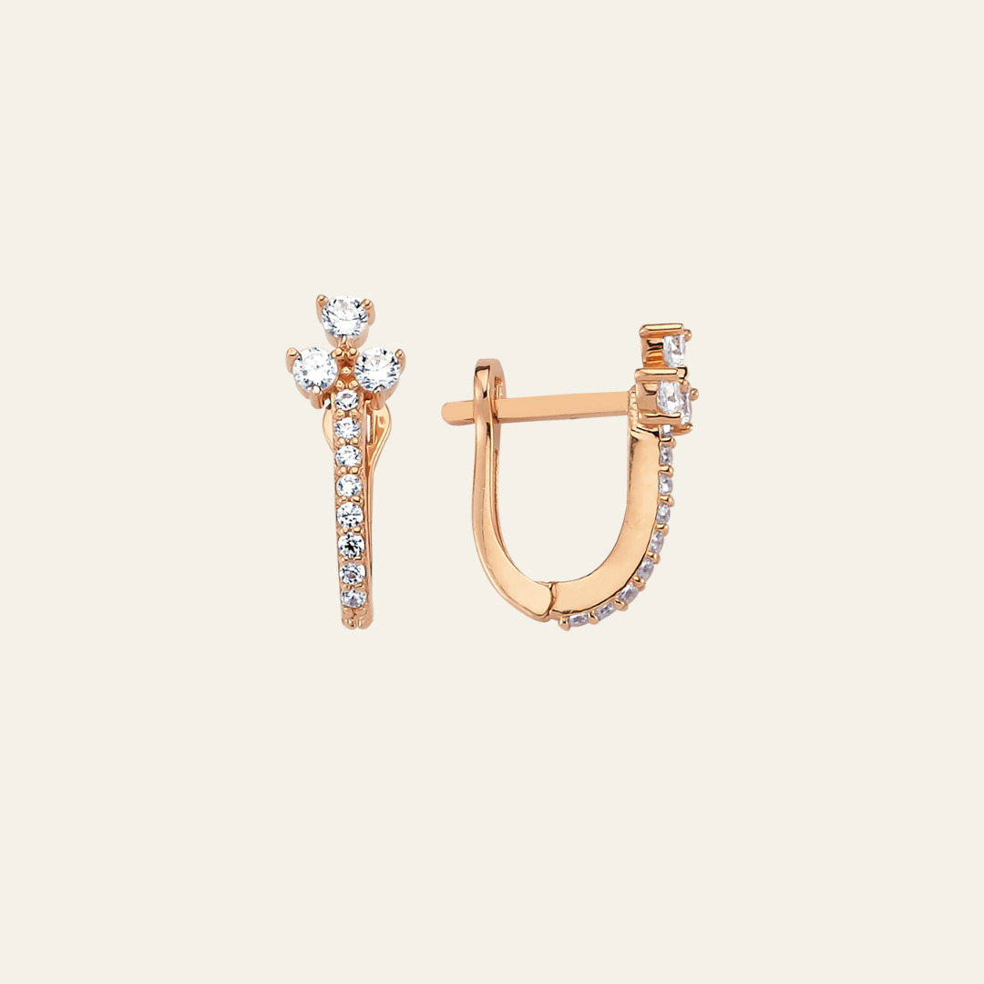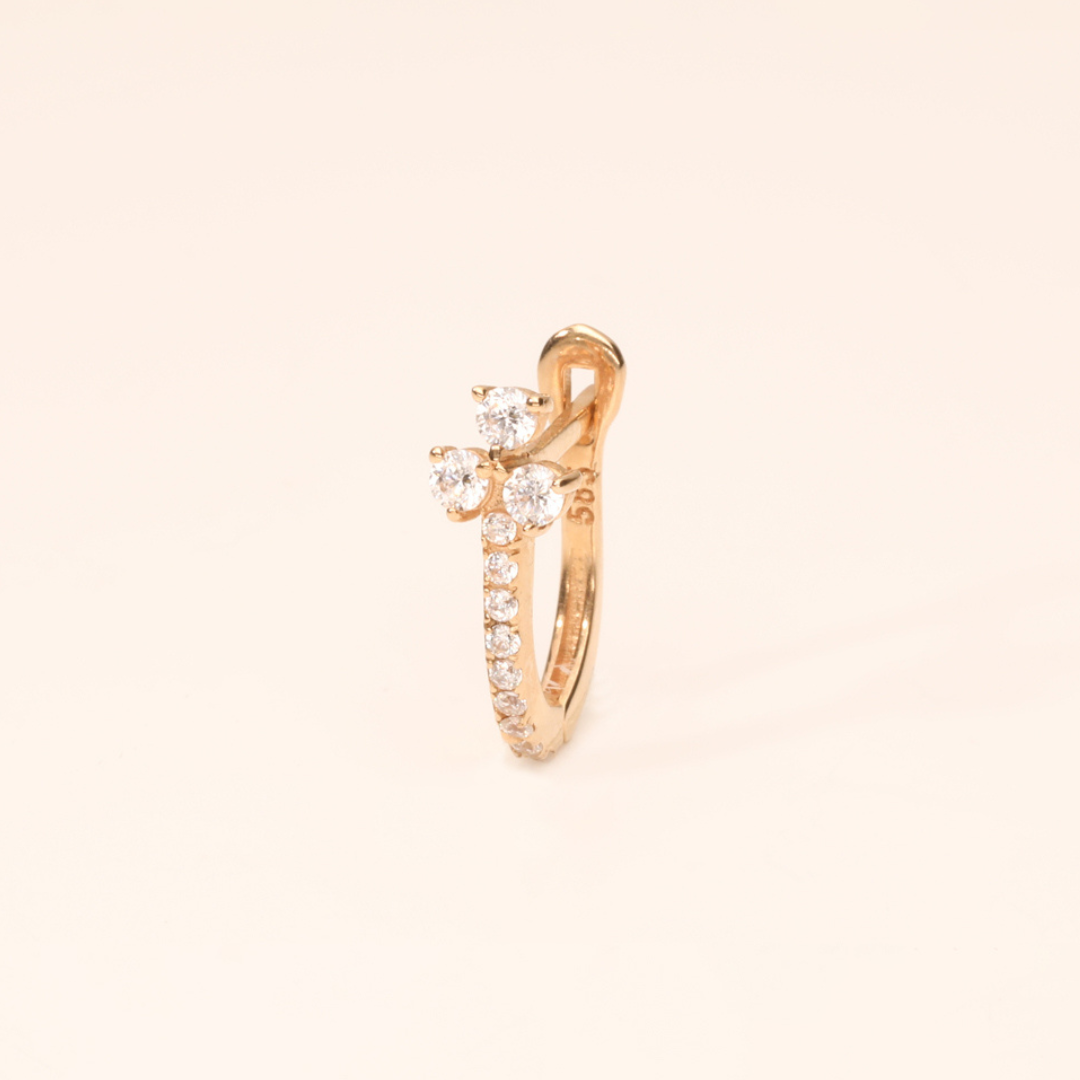 Our ever popular this three stone hoop earring hugs the ear snugly. For a classic look with a modern twist