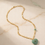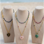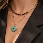 This season is all about long necklaces with chunky colourful pendants. Our coloured stone hearts with intricate zirconia inlays are hung on our antique inspired chain to create the perfect statement piece. Wear with a crisp white shirt or a black structured blazer for this seasons ultimate look