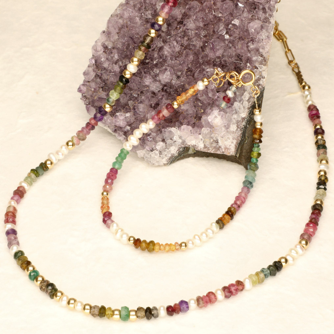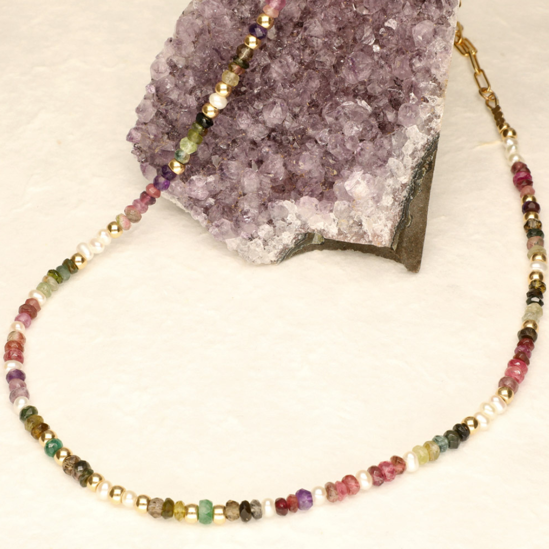 Tourmaline Ruby Amethyst Emerald and Smokey Topaz Asymetrical 4-5mm pearls