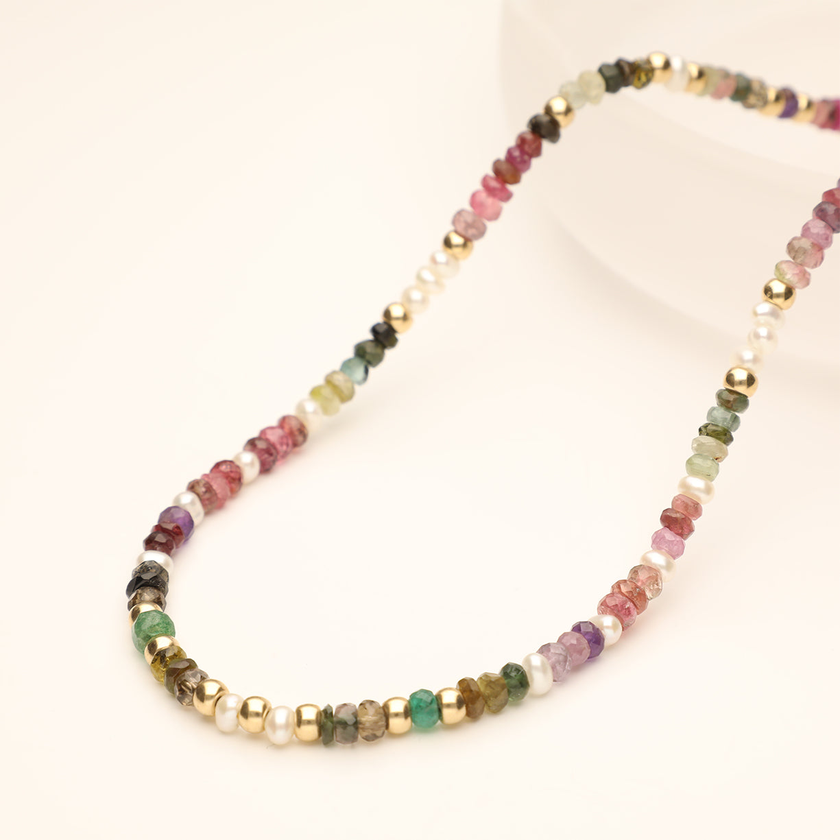 Rainbow Multicolour Long Stone and Pearl Gold Filled Necklace