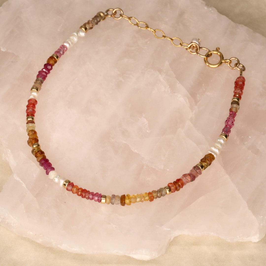 Coloured Sapphires and Pearl Rainbow Gold Filled Bracelet