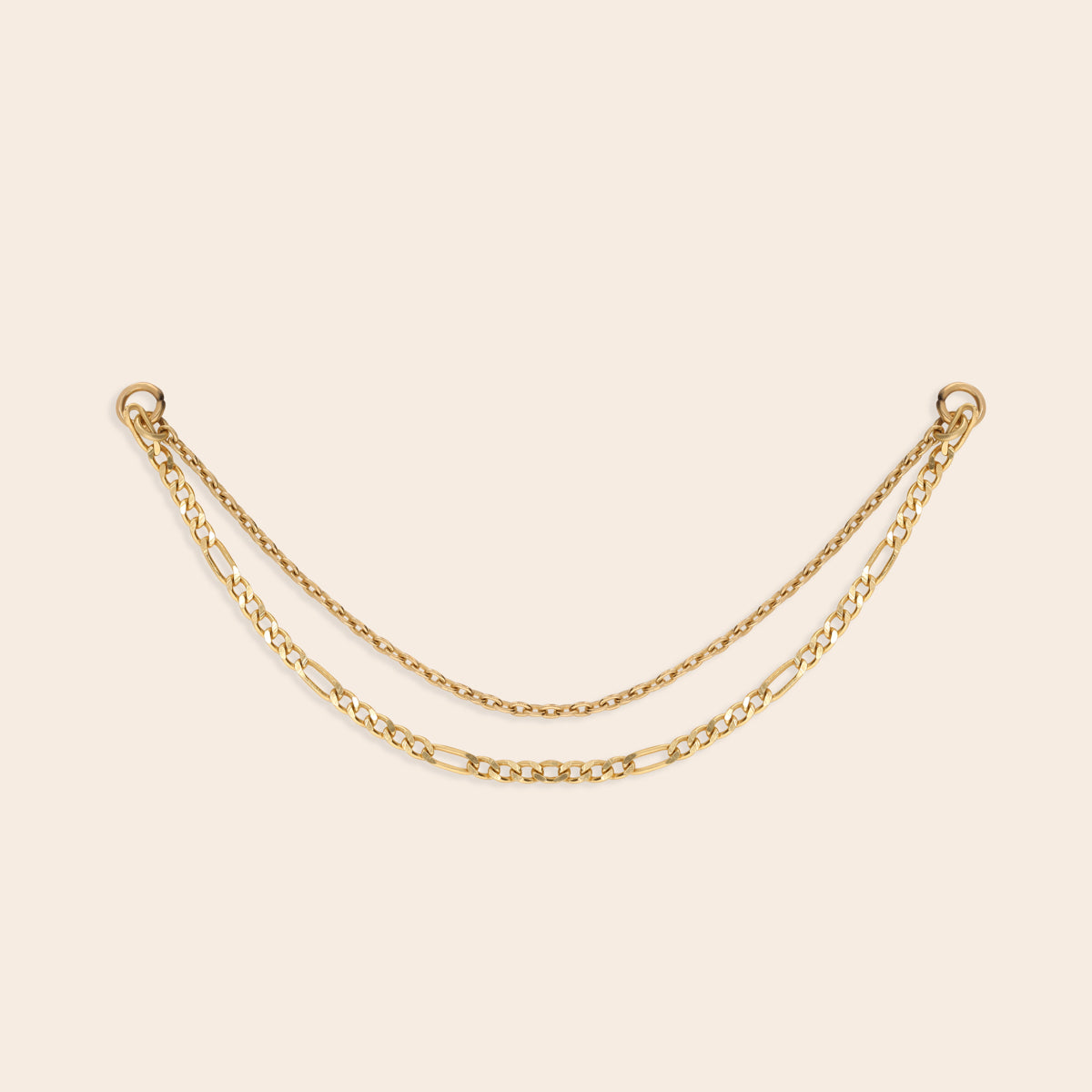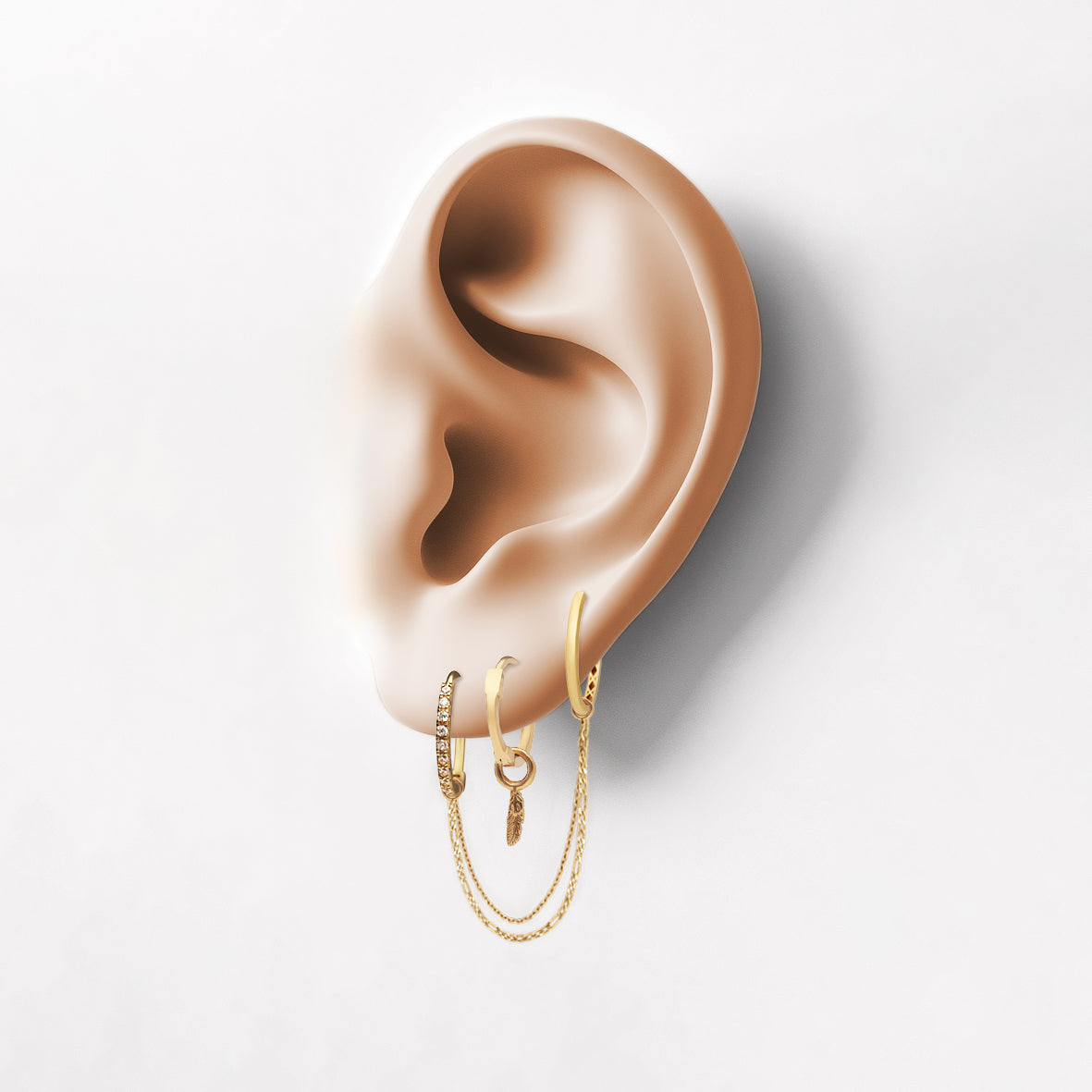 This little baby will turn and basic ear hoop or stud combination into a striking drop earring. Just thread the loops onto two side by side lobe earrings or onto the front and back of an cartilage stud and watch the magic happen