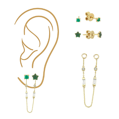 No need to discard your favourite diamond studs to create a new modern vibe. These unique earring extensions will turn your simple studs into a modern and eye catching hanging earring. Simply thread them onto two adjacent studs and you will transform your studs into a striking ear stack.