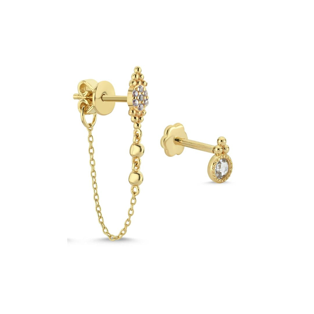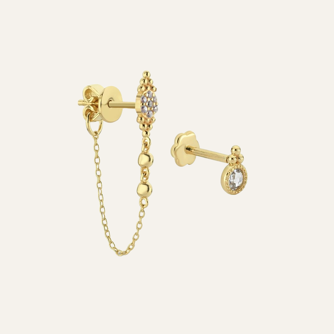 This earring set has a definite ethnic yet feminine twist. With a stud and drop earring this mix sits perfectly on the lobe, or can be worn separately with the stud sitting on any cartilage piercing