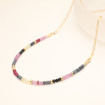 Half Stone Blue Red Sapphire and Opal Gold Filled Necklace