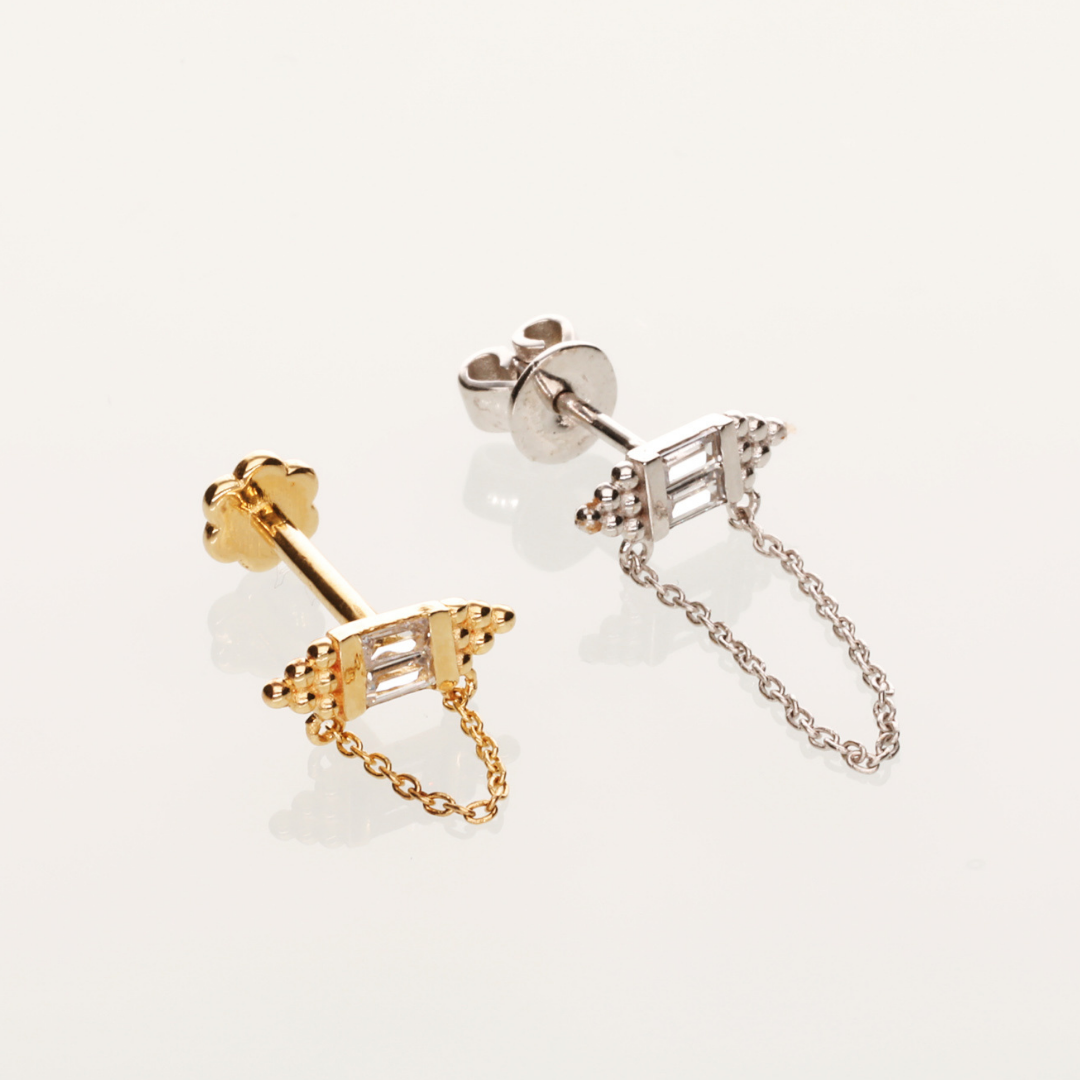 This Intricate ethnic design is the perfect piece for any lobe piercings, with its medium length chain it adds just the right amount of movement to your stack