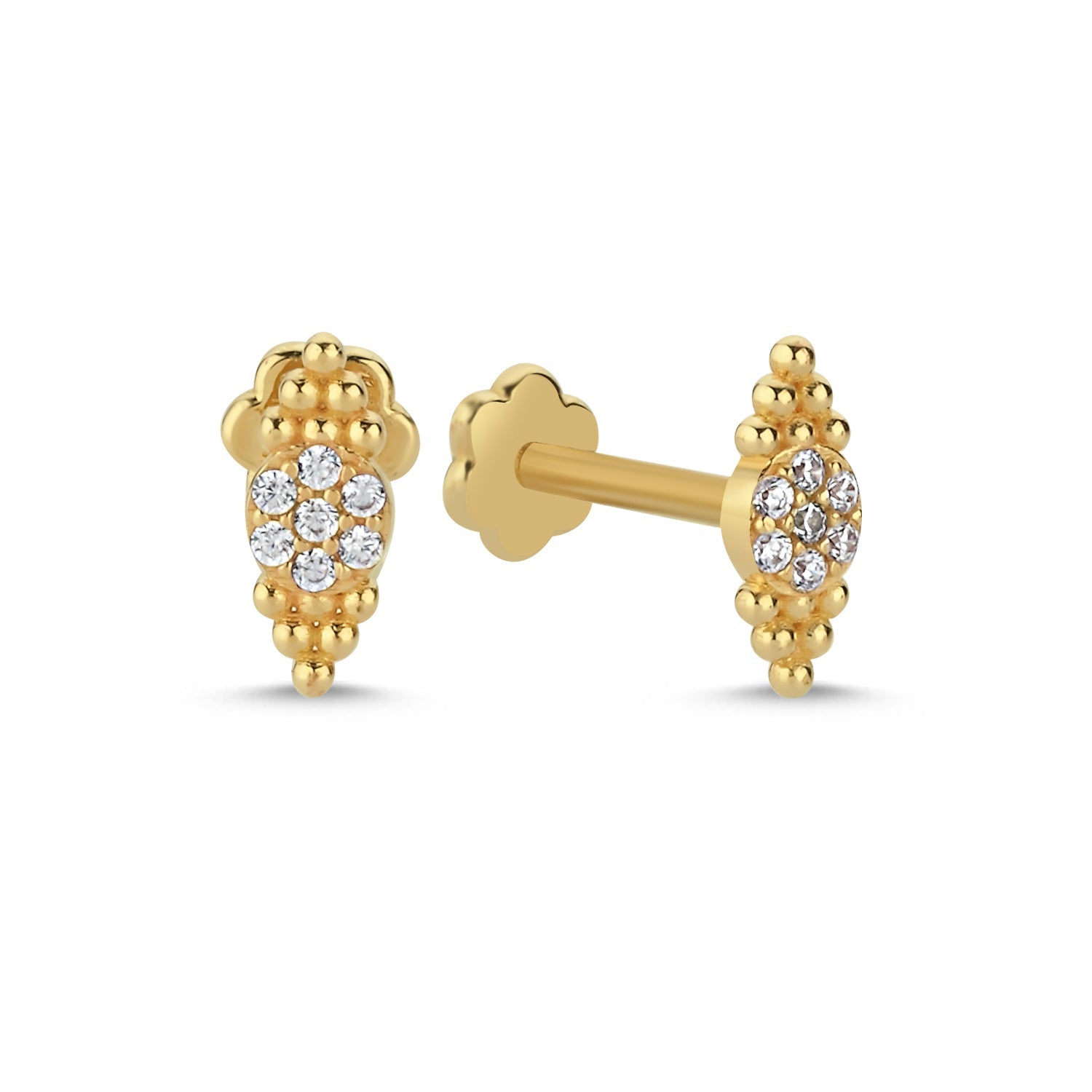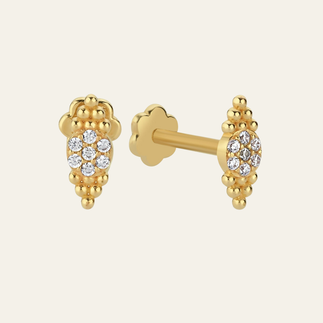 This intricate design is perfect for lobe or cartilage piercings. Modern with a touch of ethnic detailing it is the perfect piece to stack.