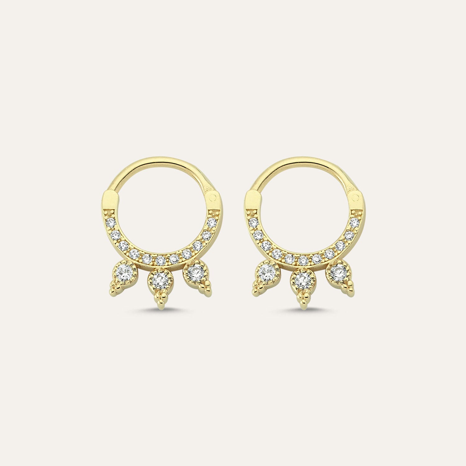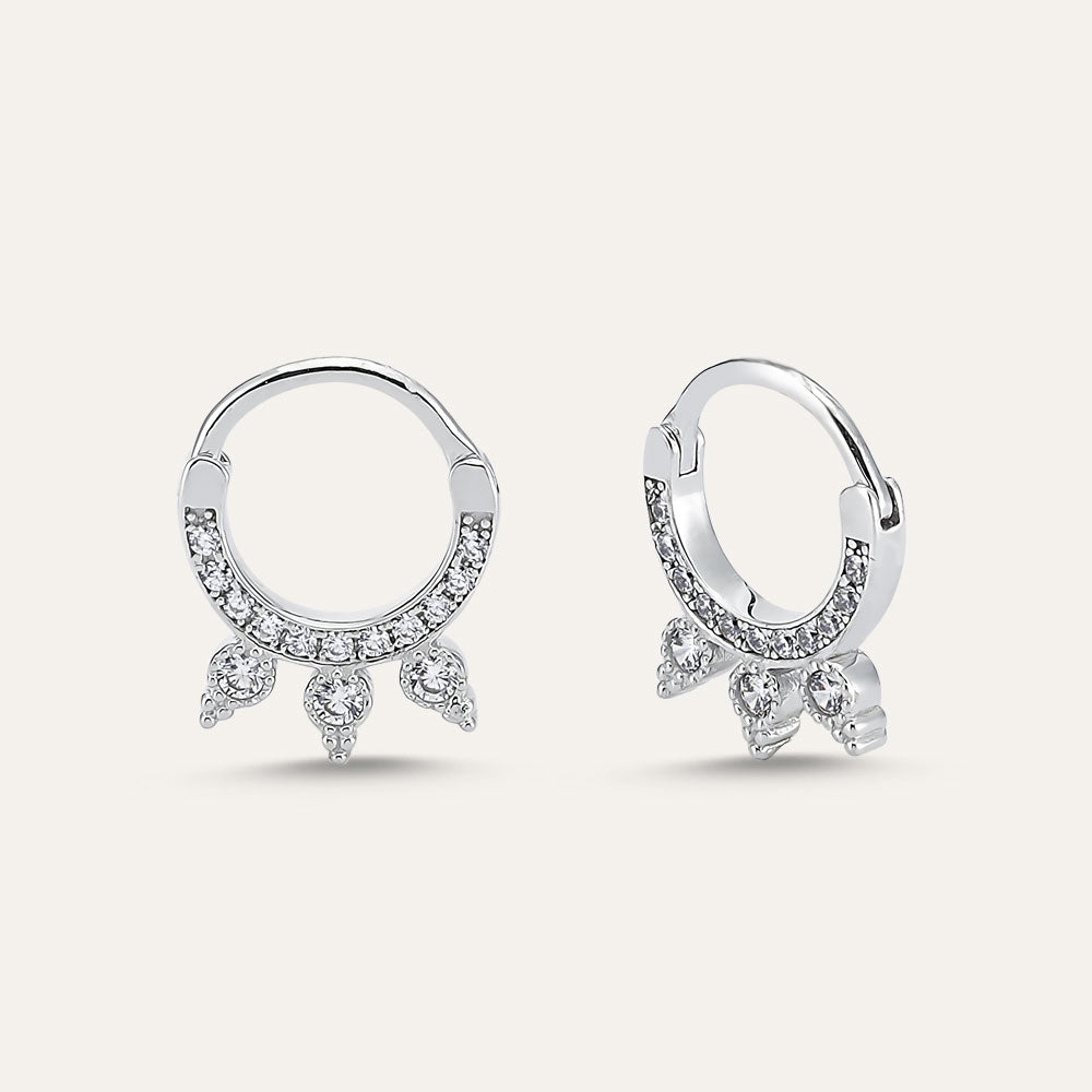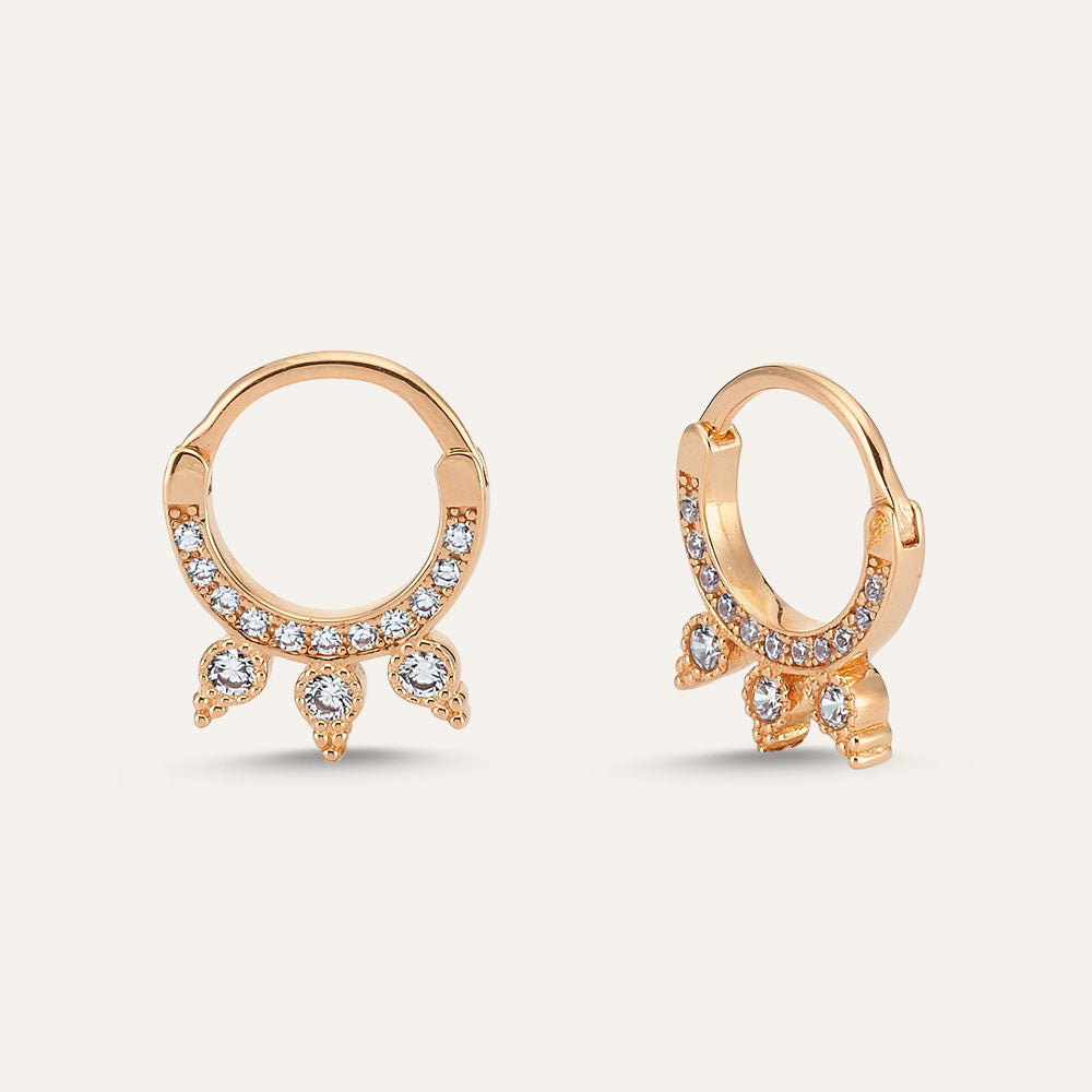 This eye catching ear hoop has a distinctively ethnic vibe. Intricate detailing combined with ornate stone embellishment create an eye catching and feminine piece that can be worn in helix or daith pier.