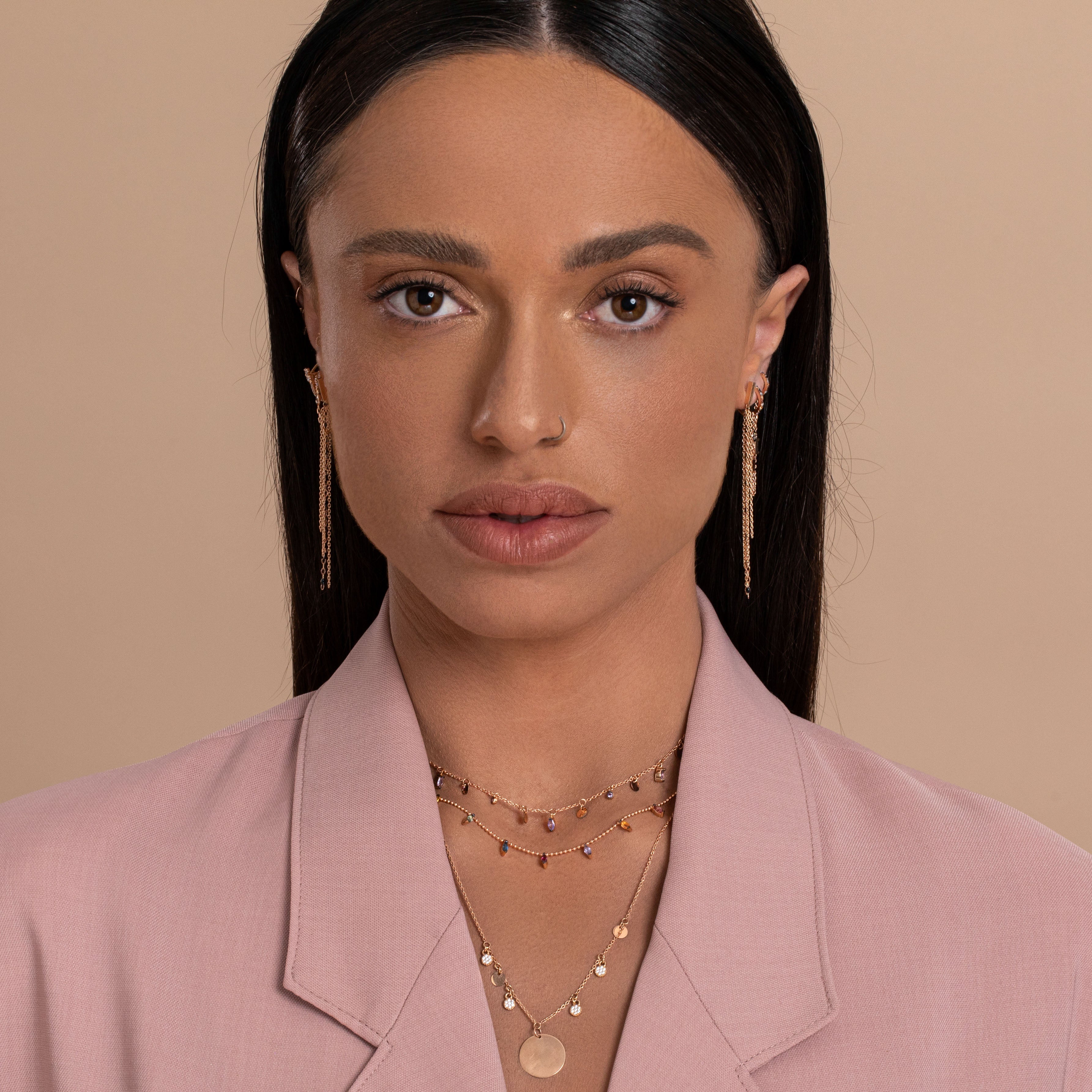 This new version of our famous Shakira Choker is as beautiful as it is versatile. Hand set with specially selected coloured semi precious stones this necklace is one of those pieces you will wear and wear. A real must have
