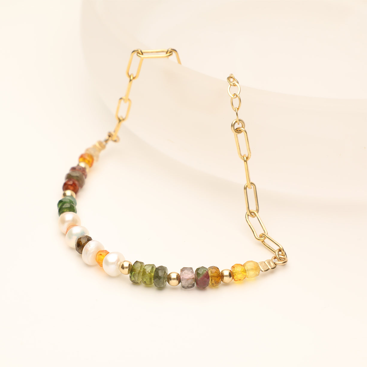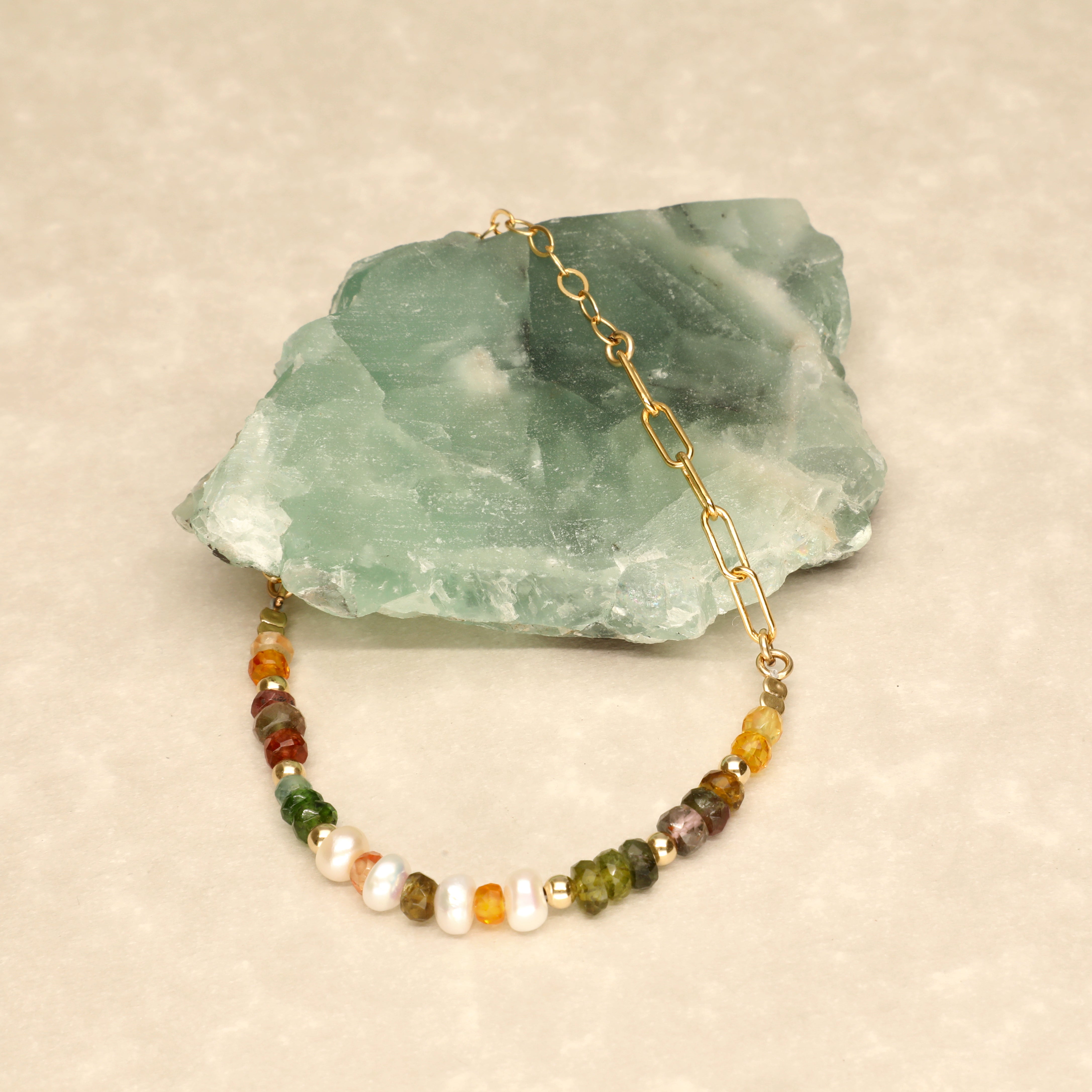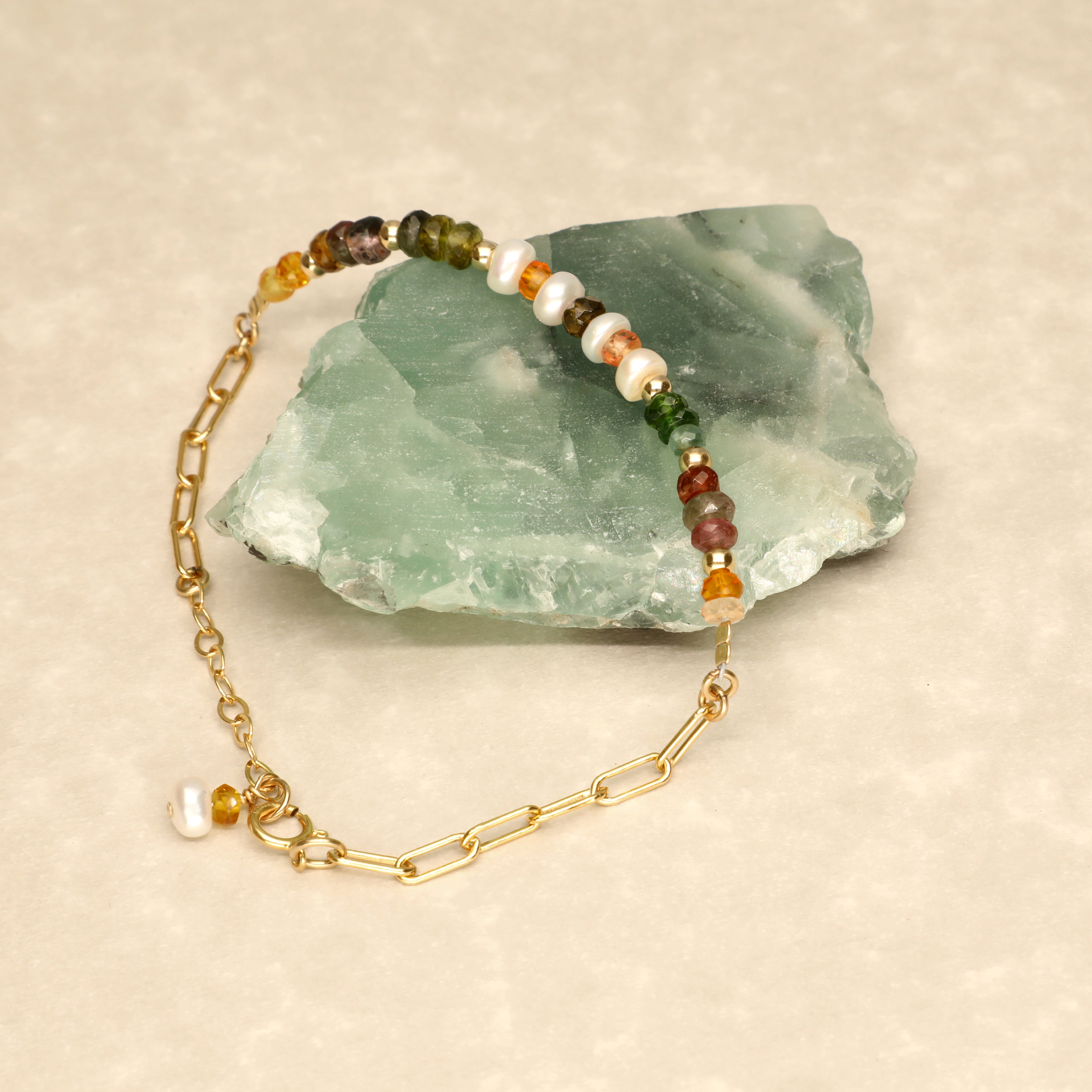 Autumn Leaves Stone and Pearl Gold Filled Bracelet