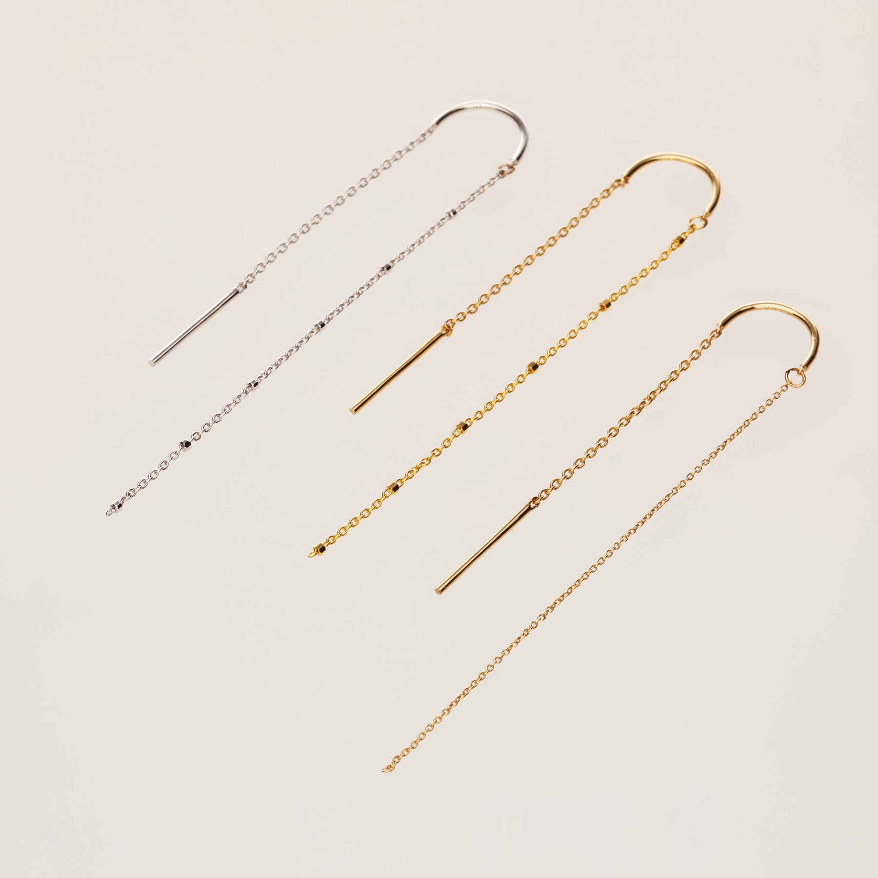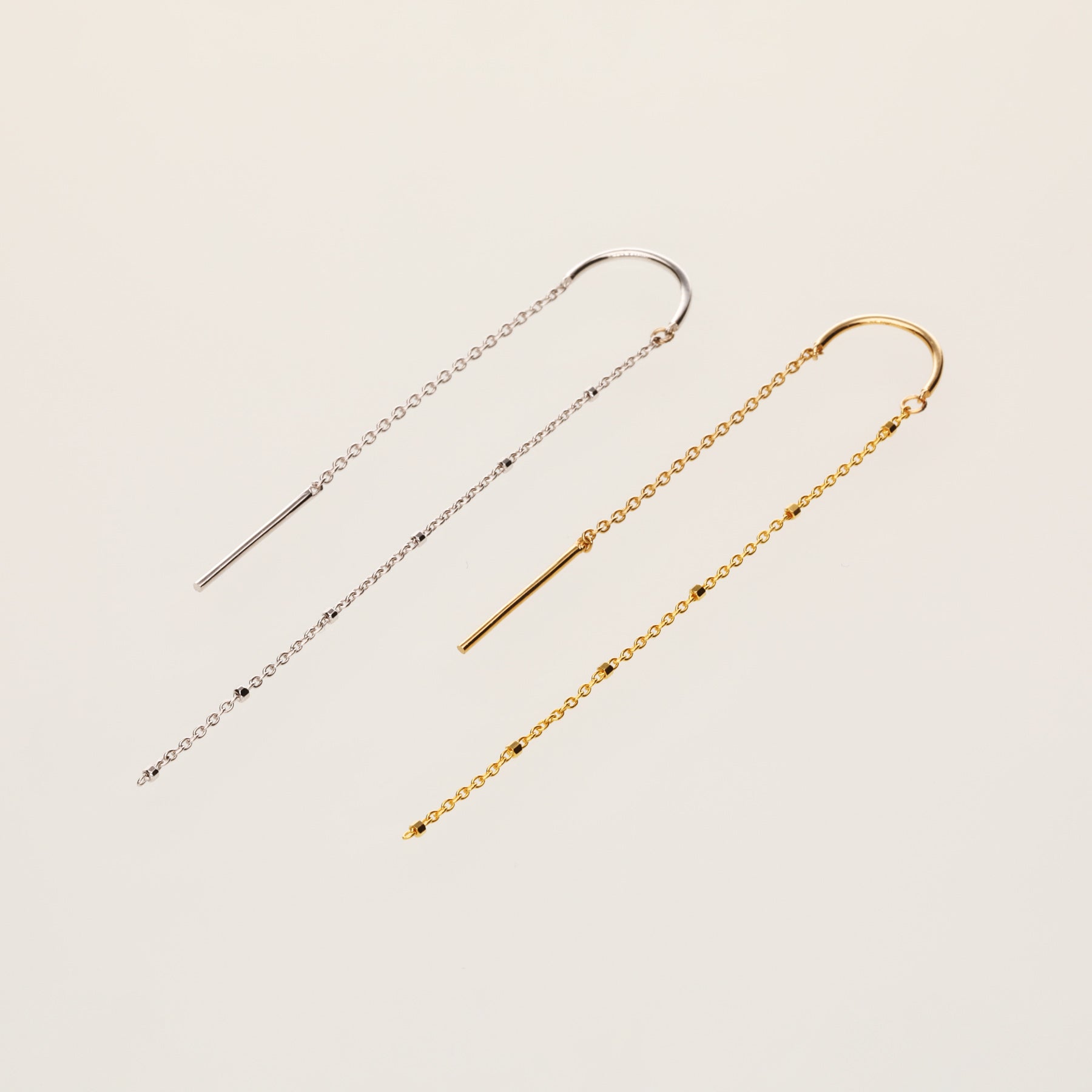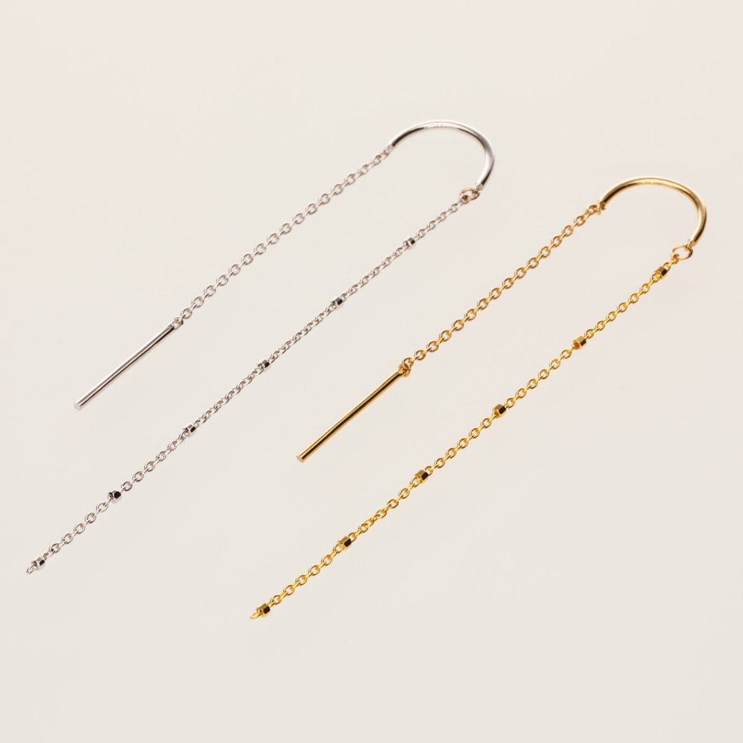 Sleek and stylish this long "barely there" style will add sparkle and movement to your ear stack
