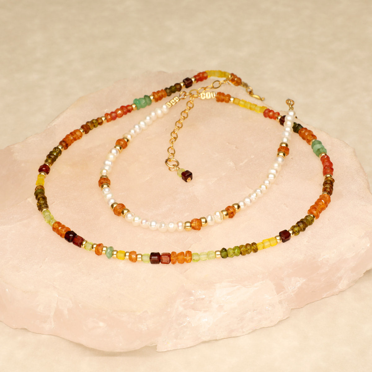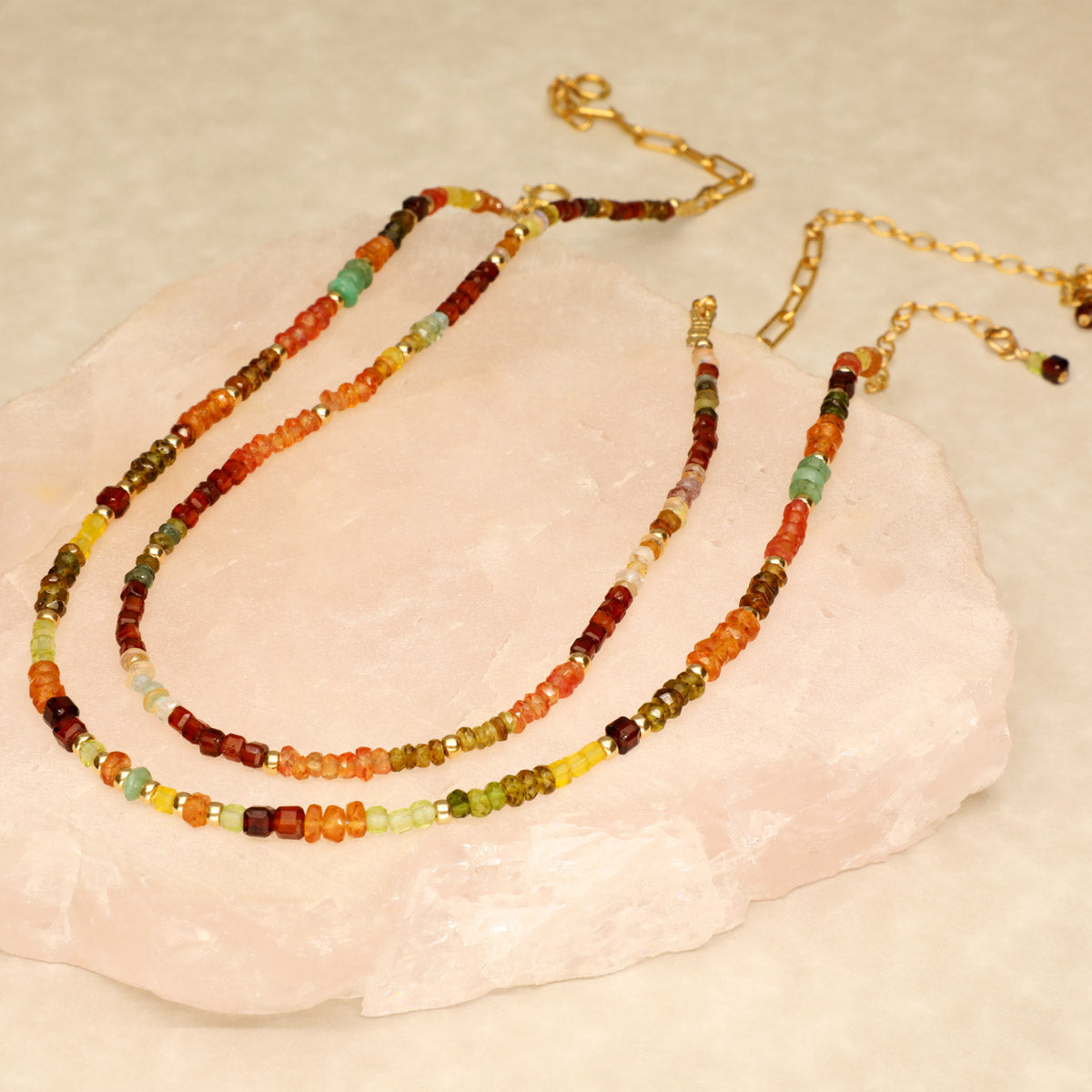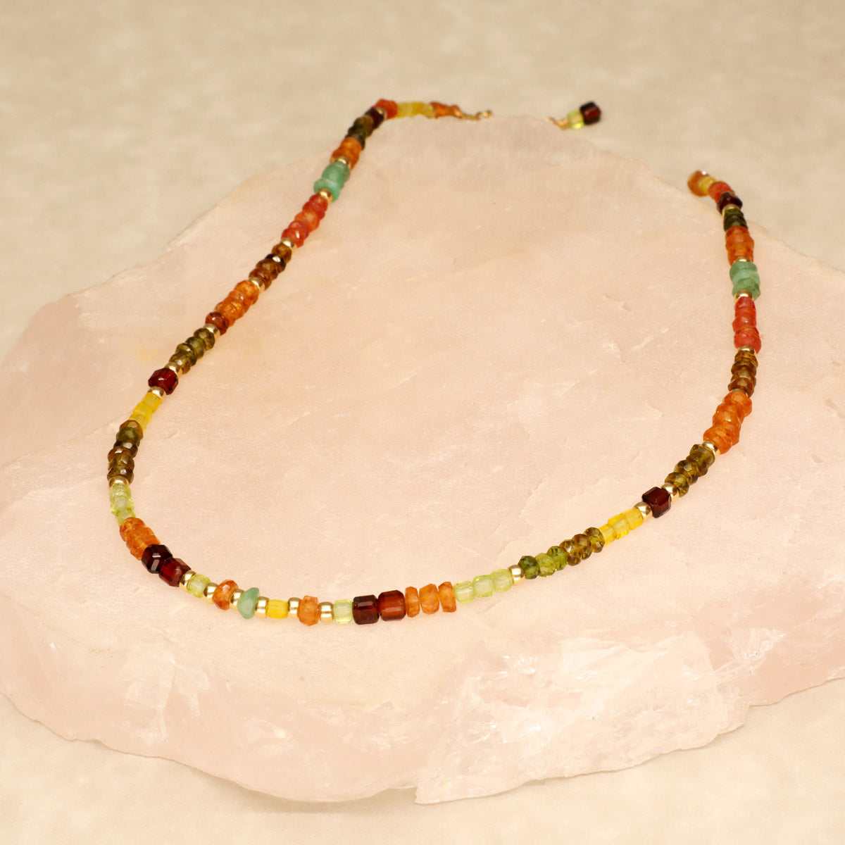 Autumn and aqua Mix semi Precious Gold Filled Necklace