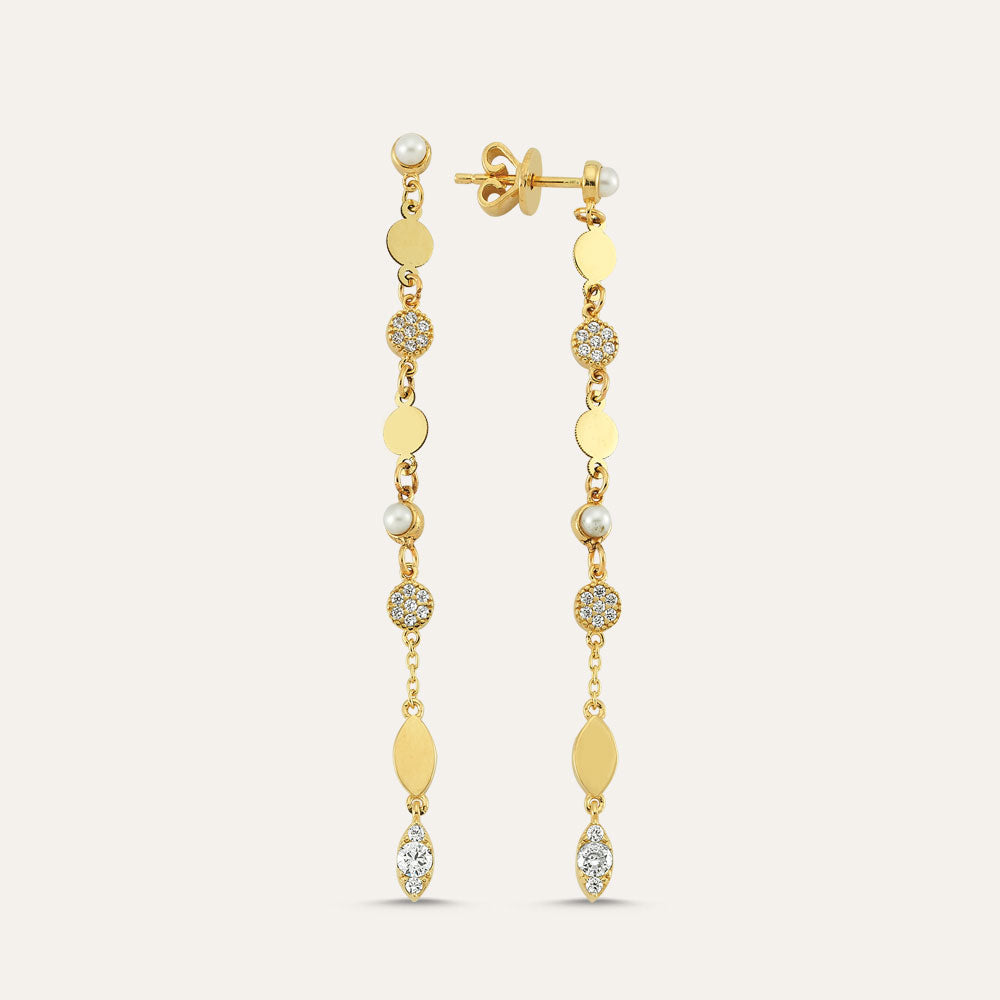 This style is one of my favorite pieces in the collection. Worn asymmetrically as a single earring or as a classic pair, this piece is easy to wear and works with jeans and a t-shirt or your little black dress. Delicately accented with micro pearls and pave set stone detailing, these earrings are both contemporary yet timeless. Just love the way this style elongates the neck and moves with you. Love love love!