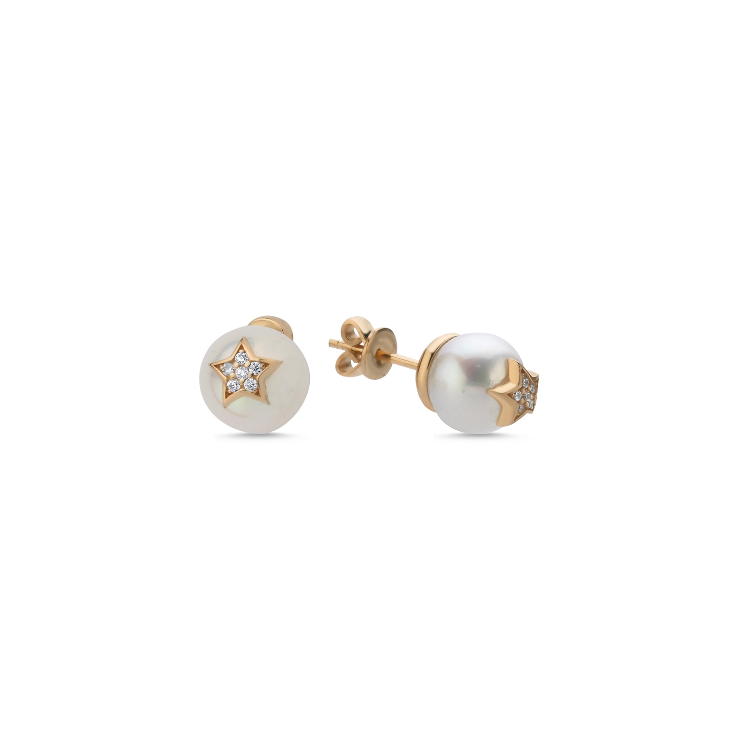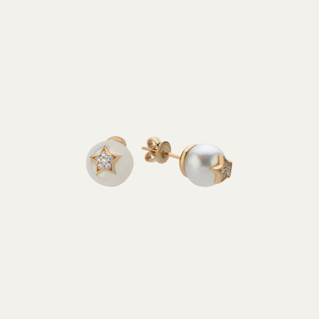 This modern interpretation of the classic pearl stud is embellished with just the right amount of sparkle. Worn on one side or as a pair this style is a striking addition to your stack
