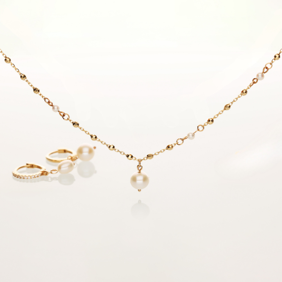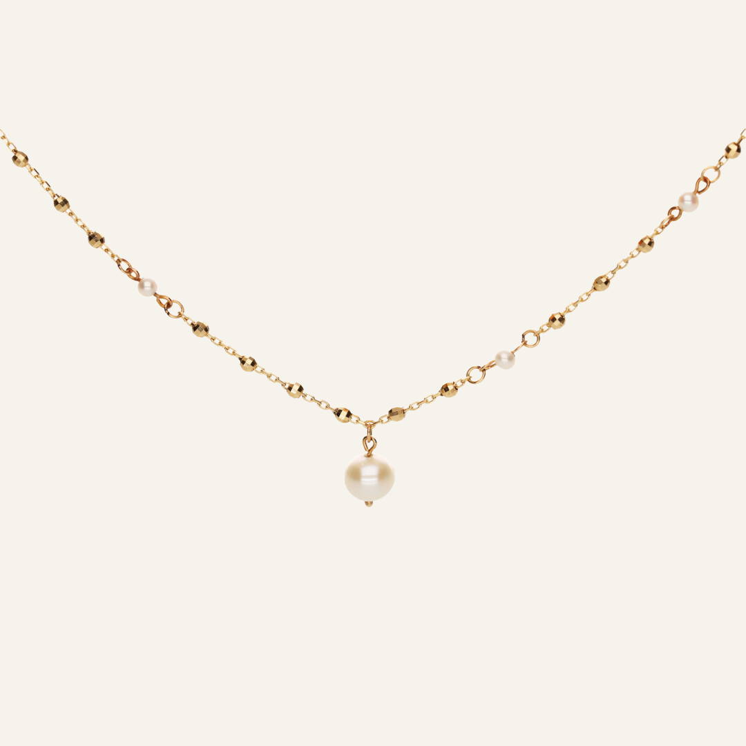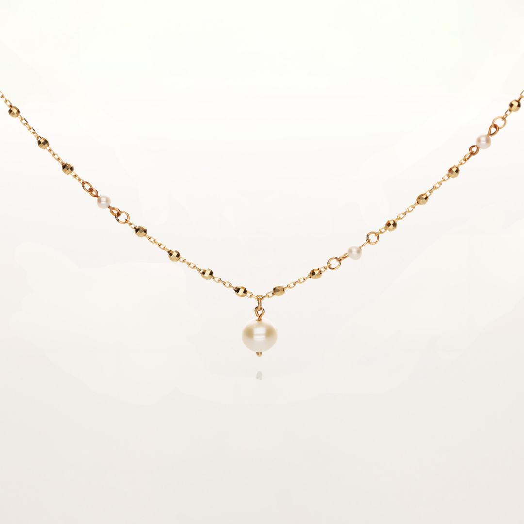 This feminine classic is the ideal piece to wear alone or layer up with others in the collection. Delicately embellished with micro pearls along the front of the chain this style highlights the luminous beauty of real pearls set in yellow gold. A real keeper!