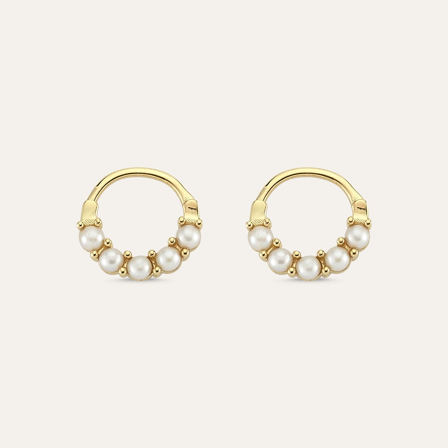 Combining the feminine pearl embellishment with contemporary and slightly  ethnically inspired design, this hoop is a great piece to add to any ear stack.  Suitable for helix or daith piercings this ear hoop is striking and versatile. Highly recommend!