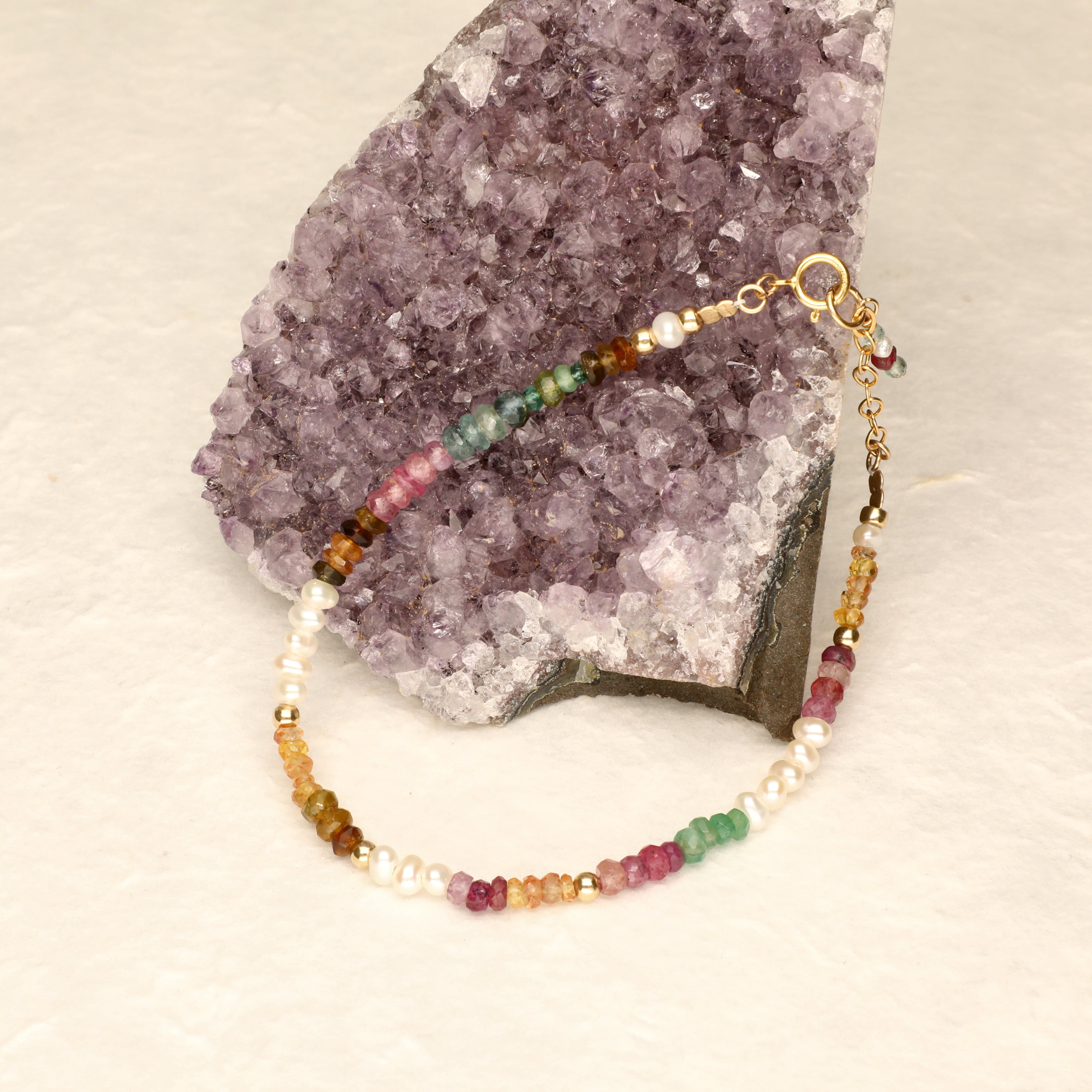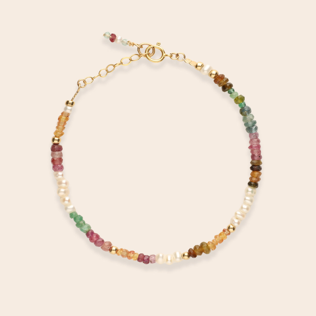 Rainbow Full Pearl and Stone Gold Filled Bracelet