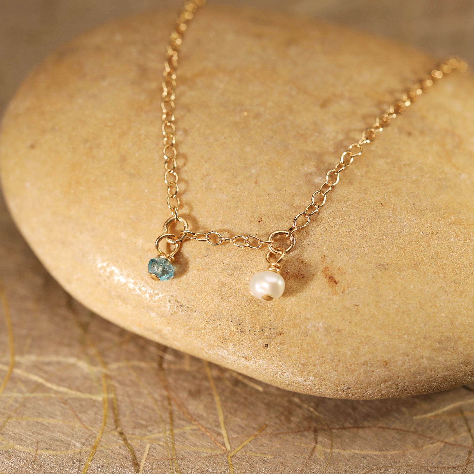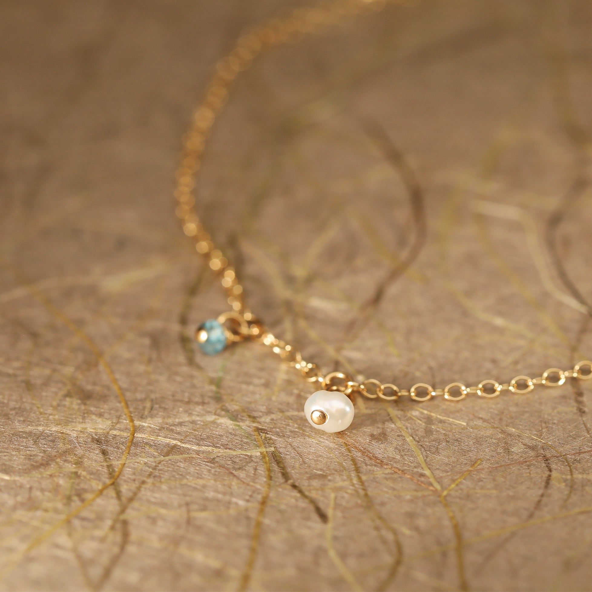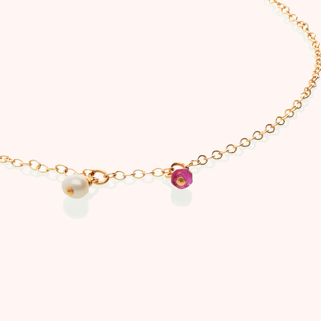 Combining all the beauty of natural stones and pearls, this intricately designed anklet is delicate and feminine. Set in gold filled chain detail this handmade piece has all the benefits of solid gold jewelery without the price tag