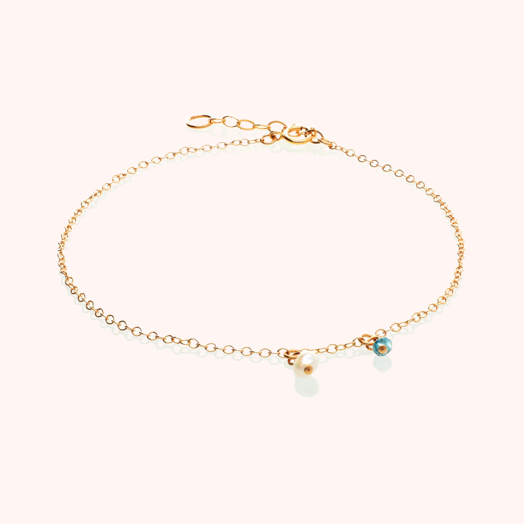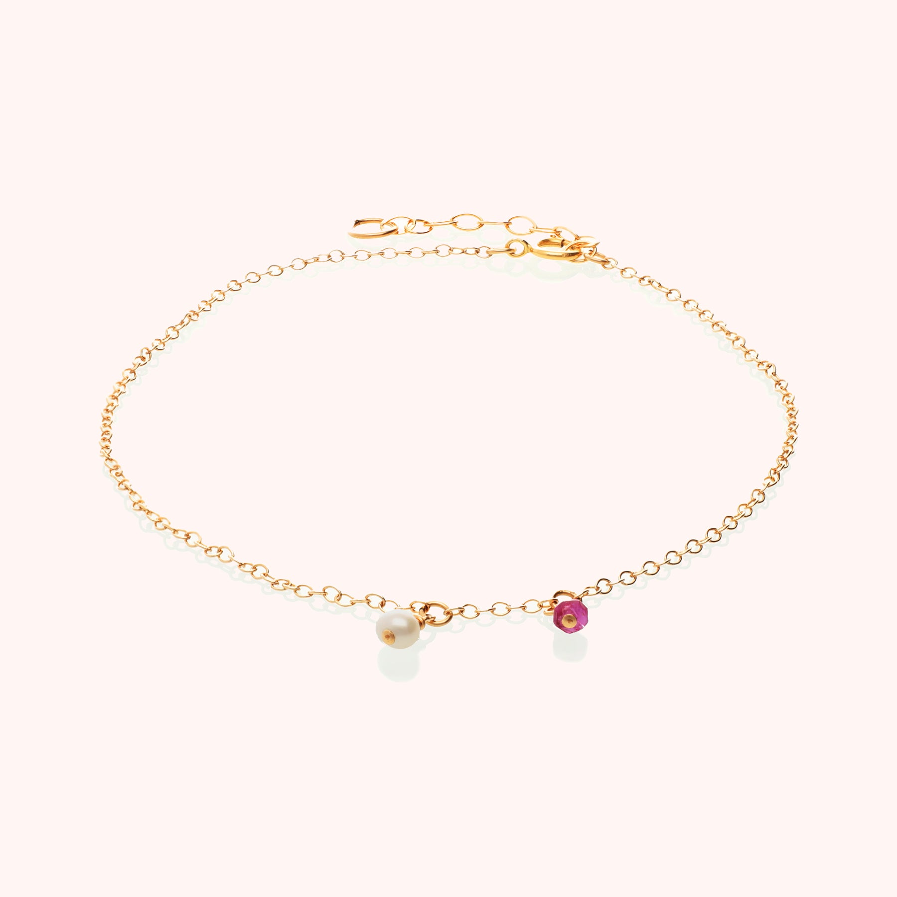 Single pearl and stone hanging Gold filled anklet