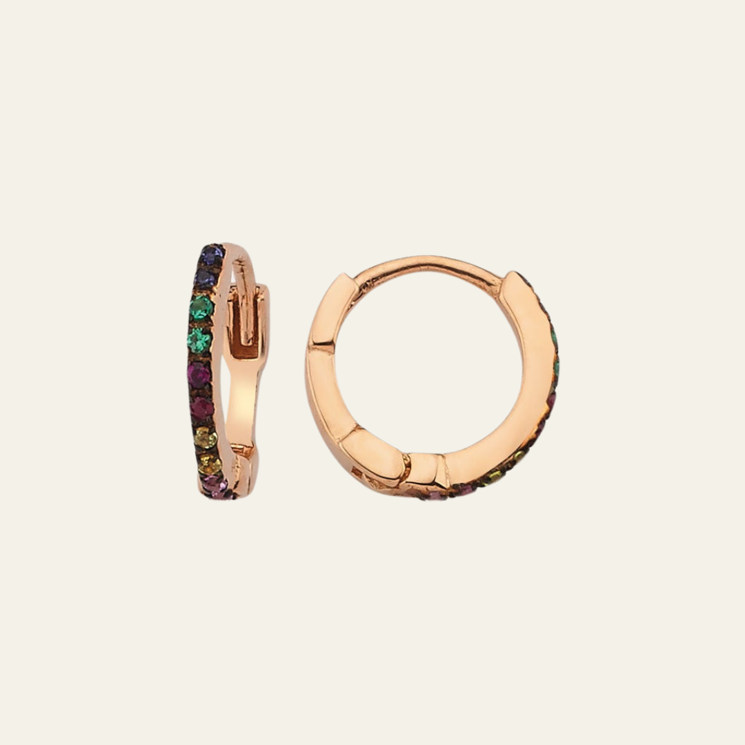This mini ear hoop sits snugly generally as a second or third lobe piercing and adds the right touch of sparkle to any ear stack. it is also a great choice for an upper lobe or tragos piercing. It's real essential for any ear party and mixes with any other earrings in the collection.
