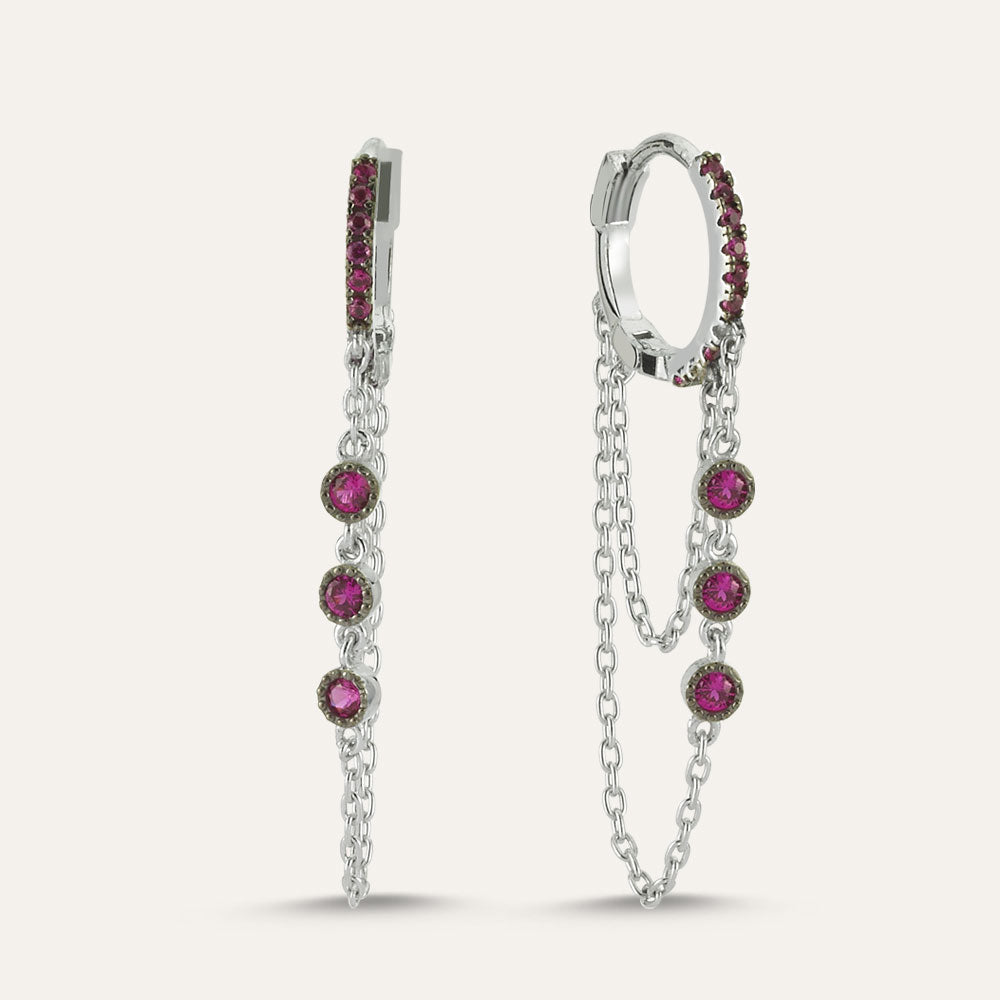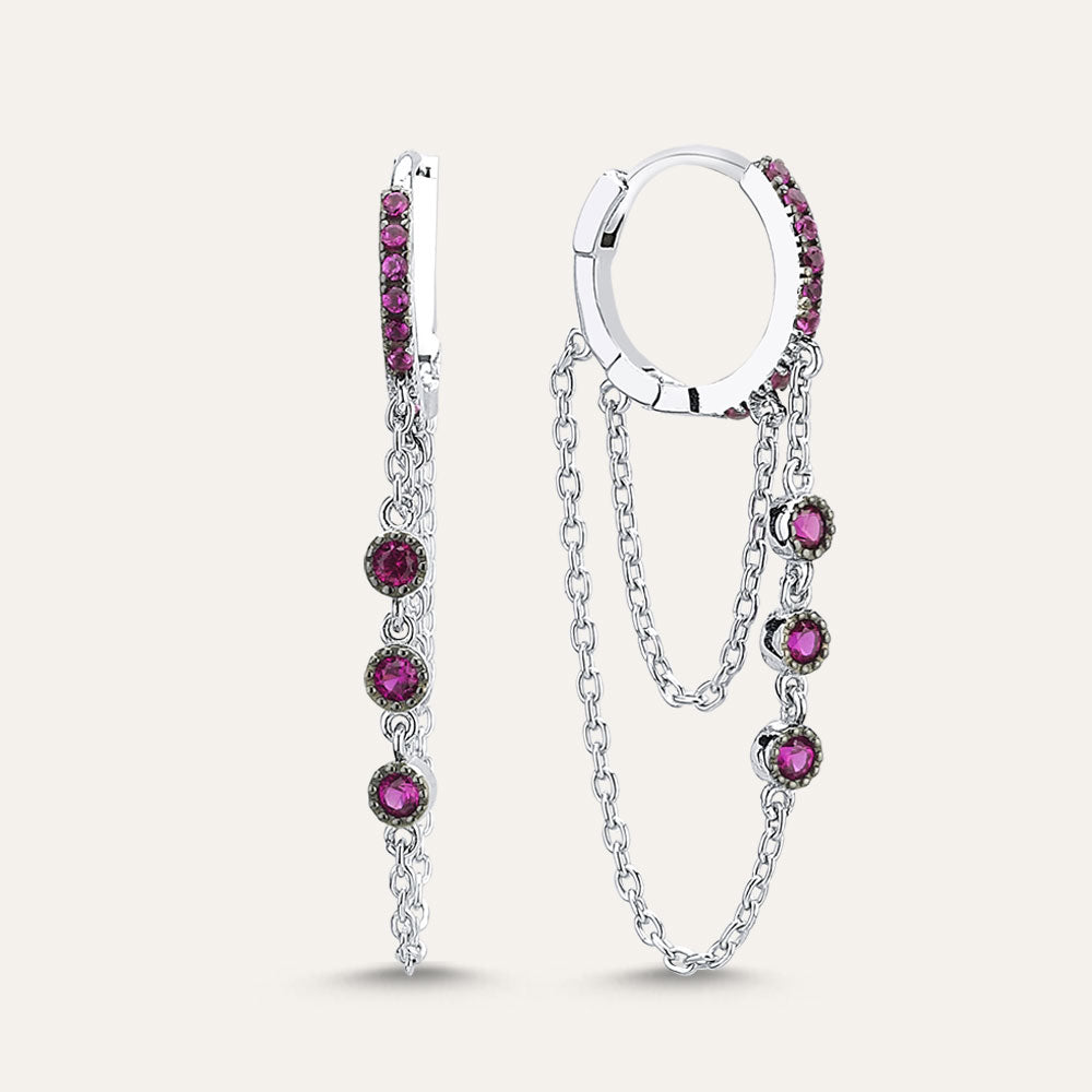 Triple Stone Chain Hoop