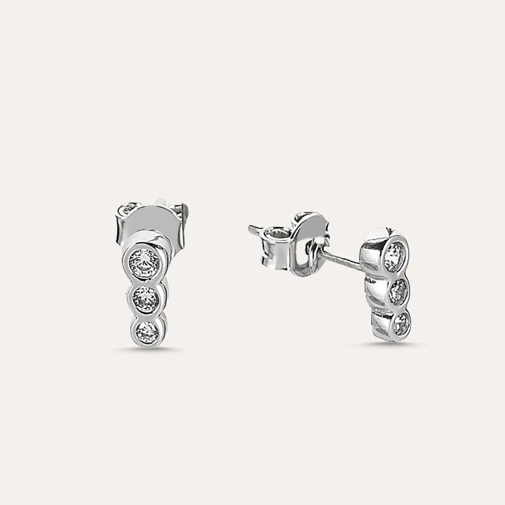 Triple Stone Stud Earring